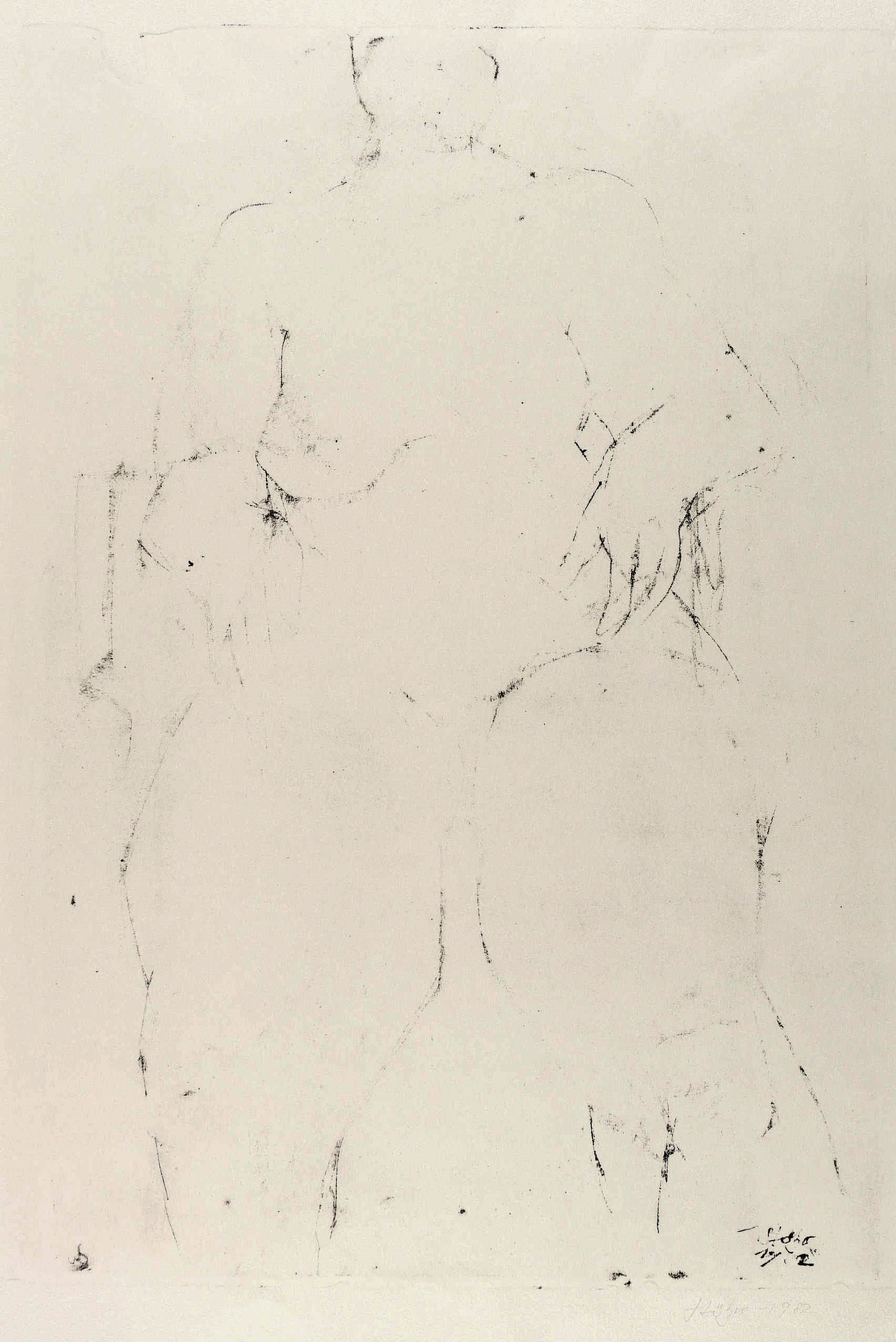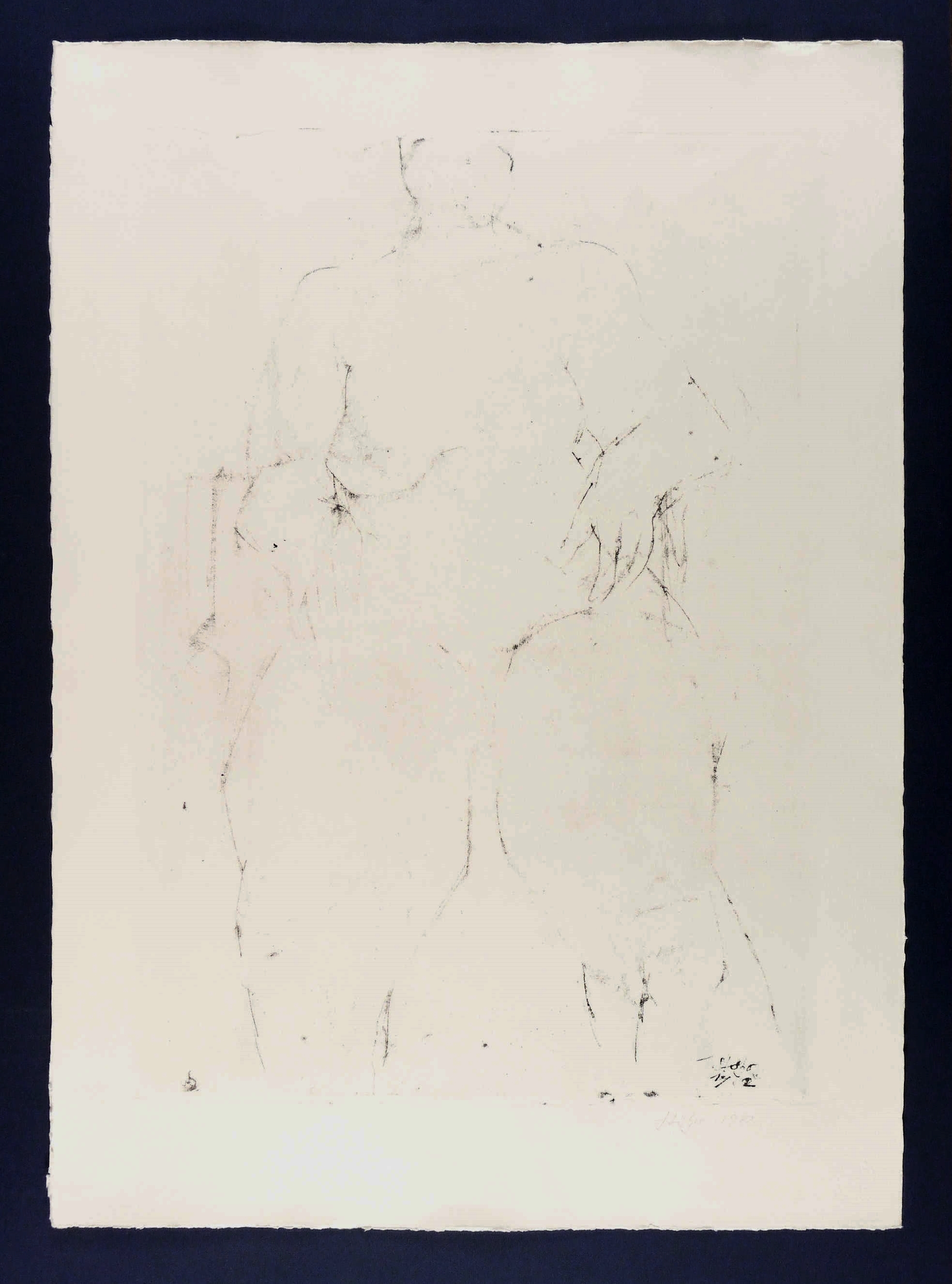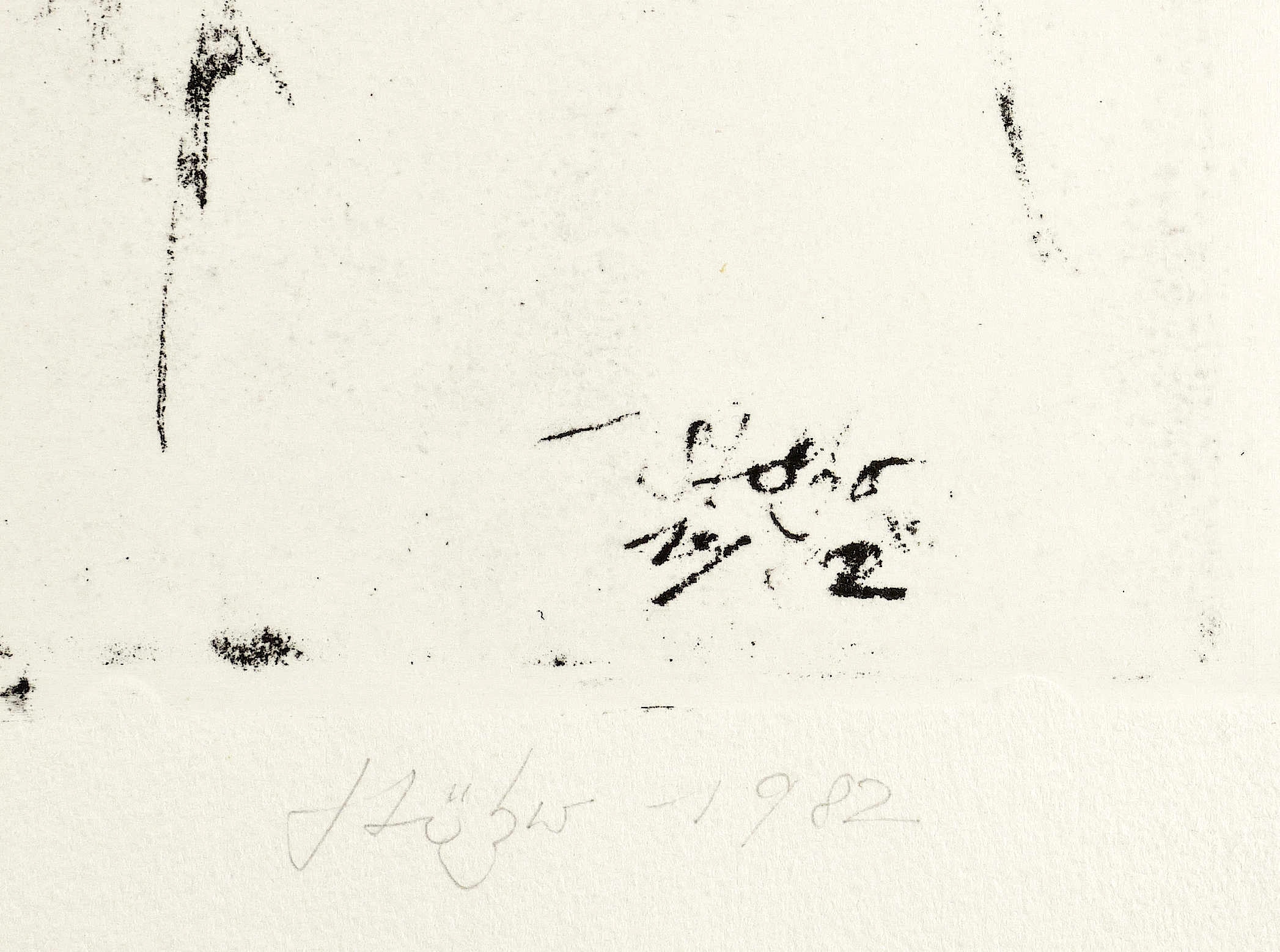 1982. Lithografie / Kreidelithografie, in Schwarz, auf hellchamois Hahnemühle-Büttenkarton. – Originale Künstlergrafik, von Werner Stötzer. – Druckerexemplar. – 64,4 x 45,6 cm (Darstellung / Druckbild), 79 x 57 cm (Blatt).
