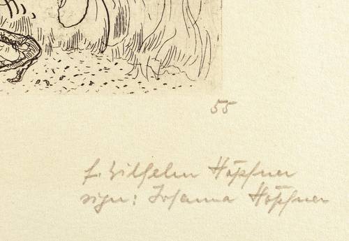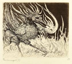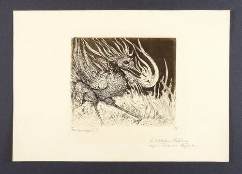 Höpfner-Kunze-Sperling 350. – In Bleistift unten links und rechts bezeichnet: ″Feuervogel (I) // 55 // f. Wilhelm Höpfner / sign: Johanna Höpfner″. – Von der Witwe des Künstler autorisierter posthumer Abzug von der originalen Platte. – Sehr schön erhalten.
