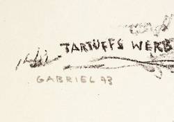 1973. Lithografie / Kreidelithografie, in Schwarz, auf weißem Karton. – Originale Künstlergrafik, von Manfred Gabriel. – 23,3 x 19,1 cm (Darstellung), 30 x 21 cm (Blatt).