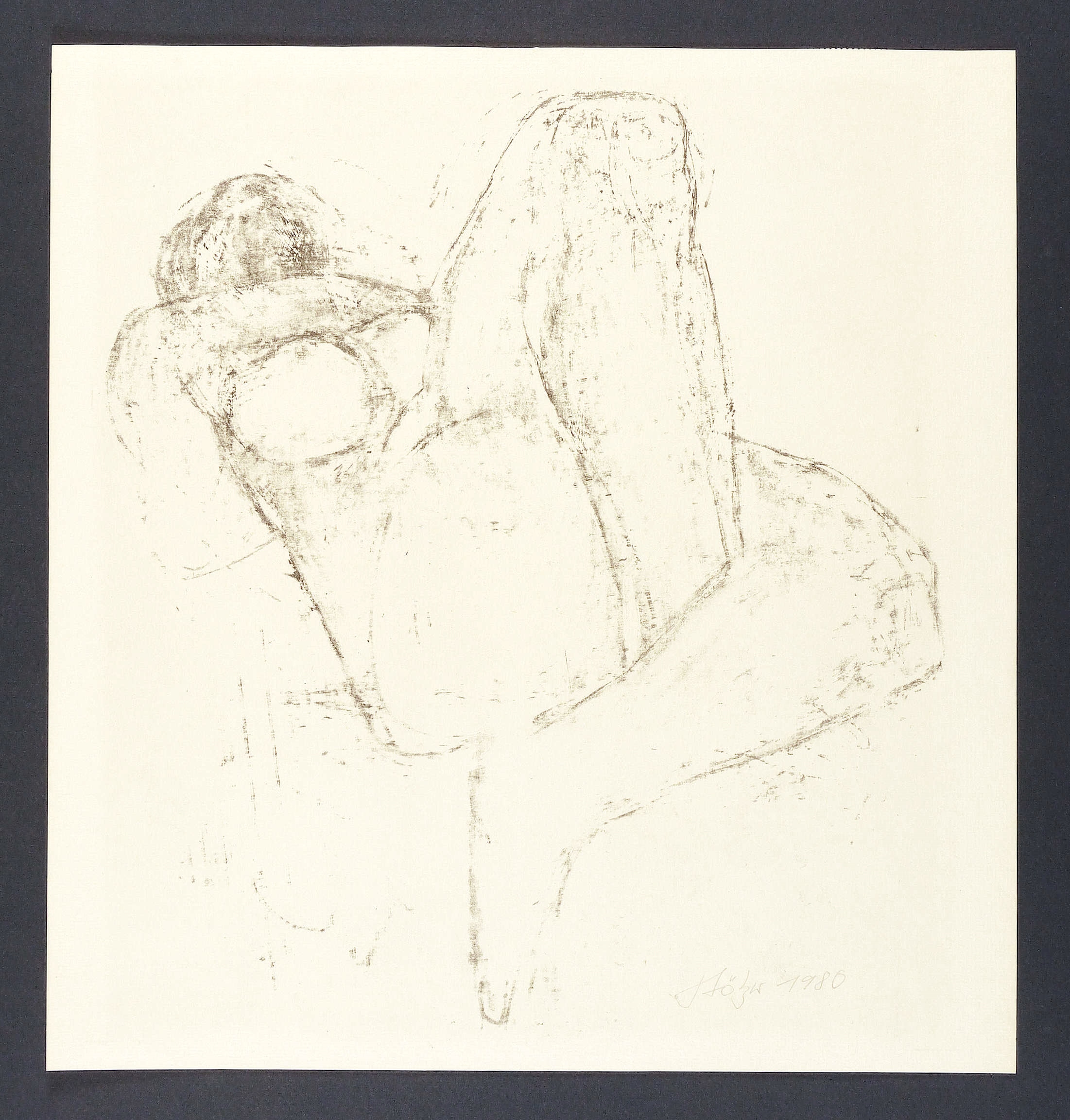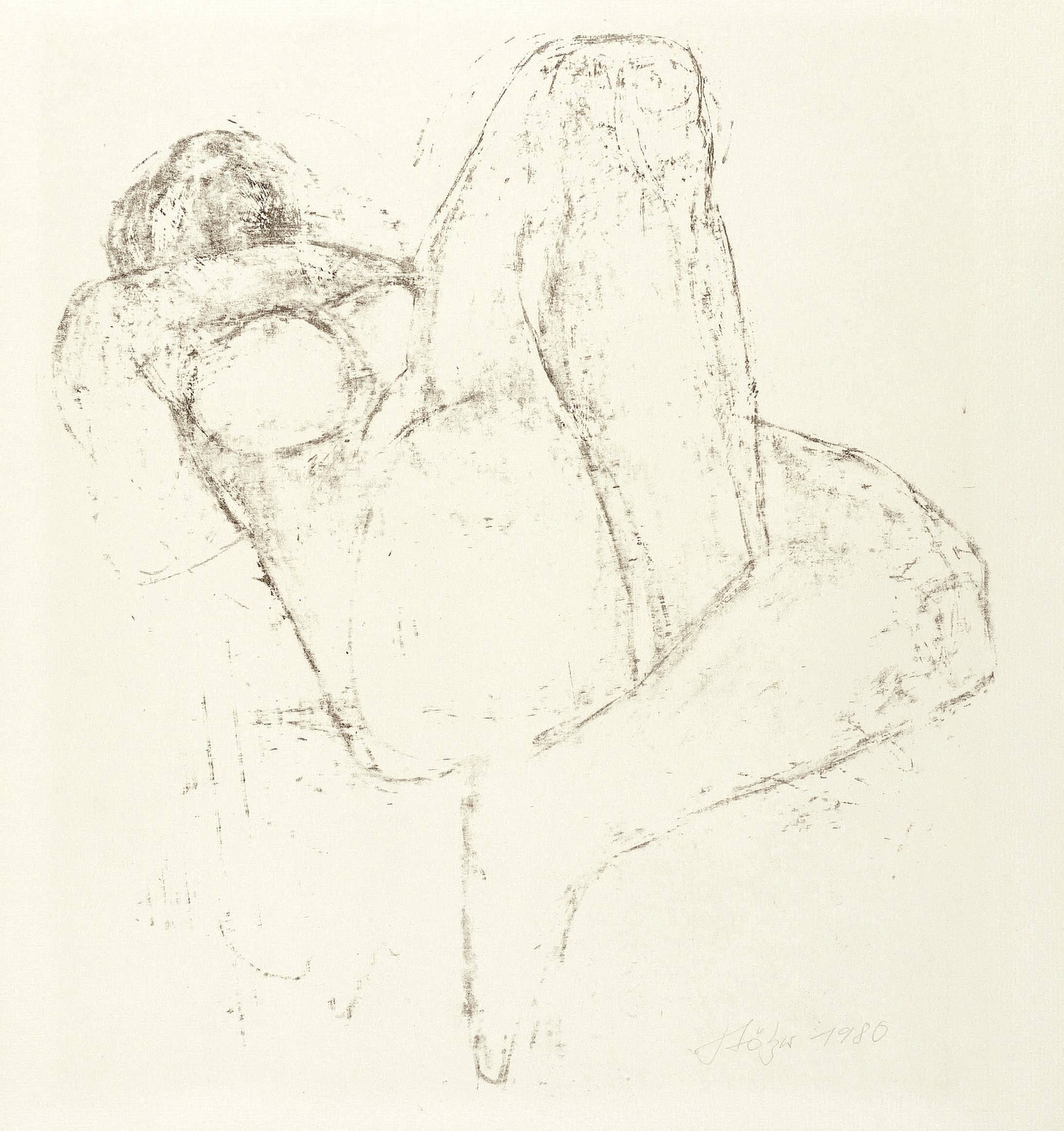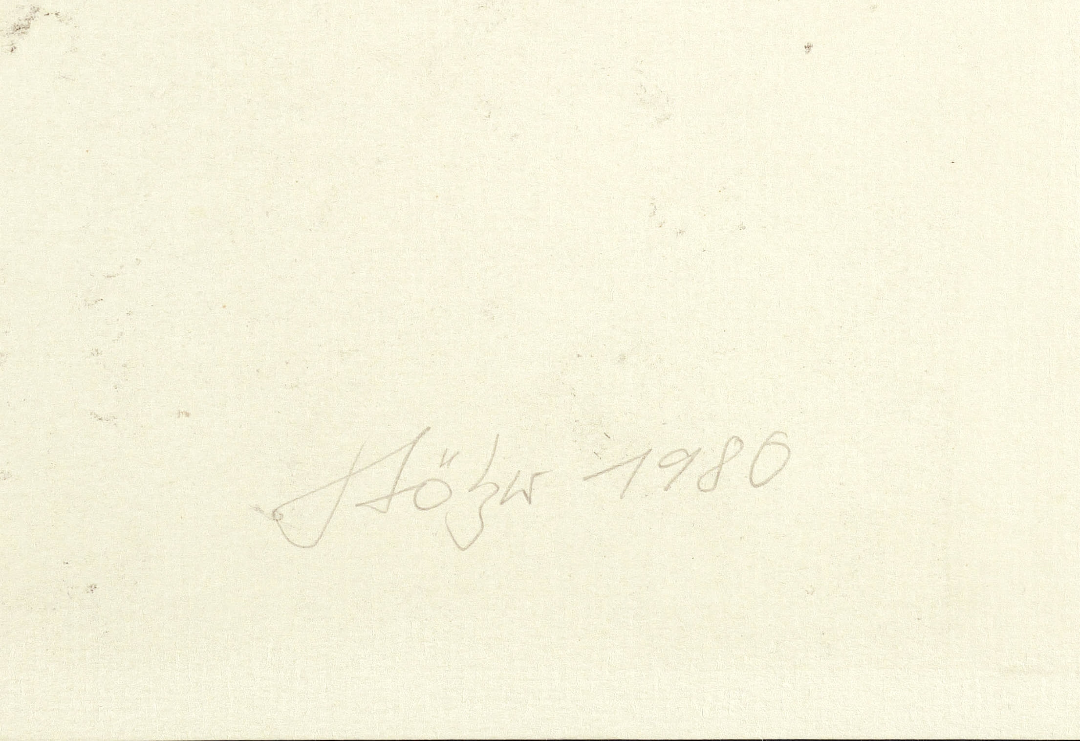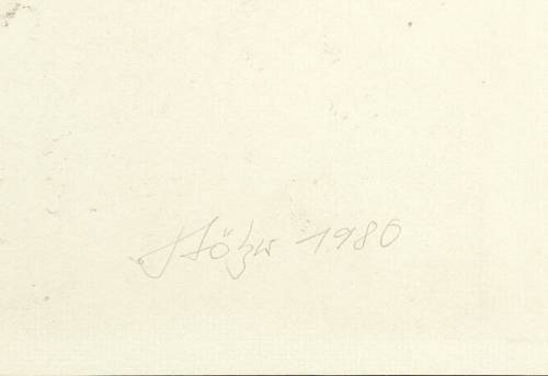 1980. Lithografie / Kreidelithografie, in Schwarz, auf hartem hellchamois Maschinenpapier. – Originale Künstlergrafik, von Werner Stötzer. – 34,0 x 30,0 cm (Darstellung / Druckbild), 37 x 35 cm (Blatt).