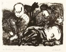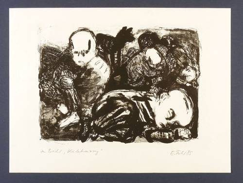 1985. Lithografie / Pinsellithografie, partiell geschabt, in Schwarz, auf Hahnemühle-Bütten. – Originale Künstlergrafik, von Ellen Fuhr. – 26,7 x 36,8 cm (Darstellung), 37,5 x 50 cm (Blatt).