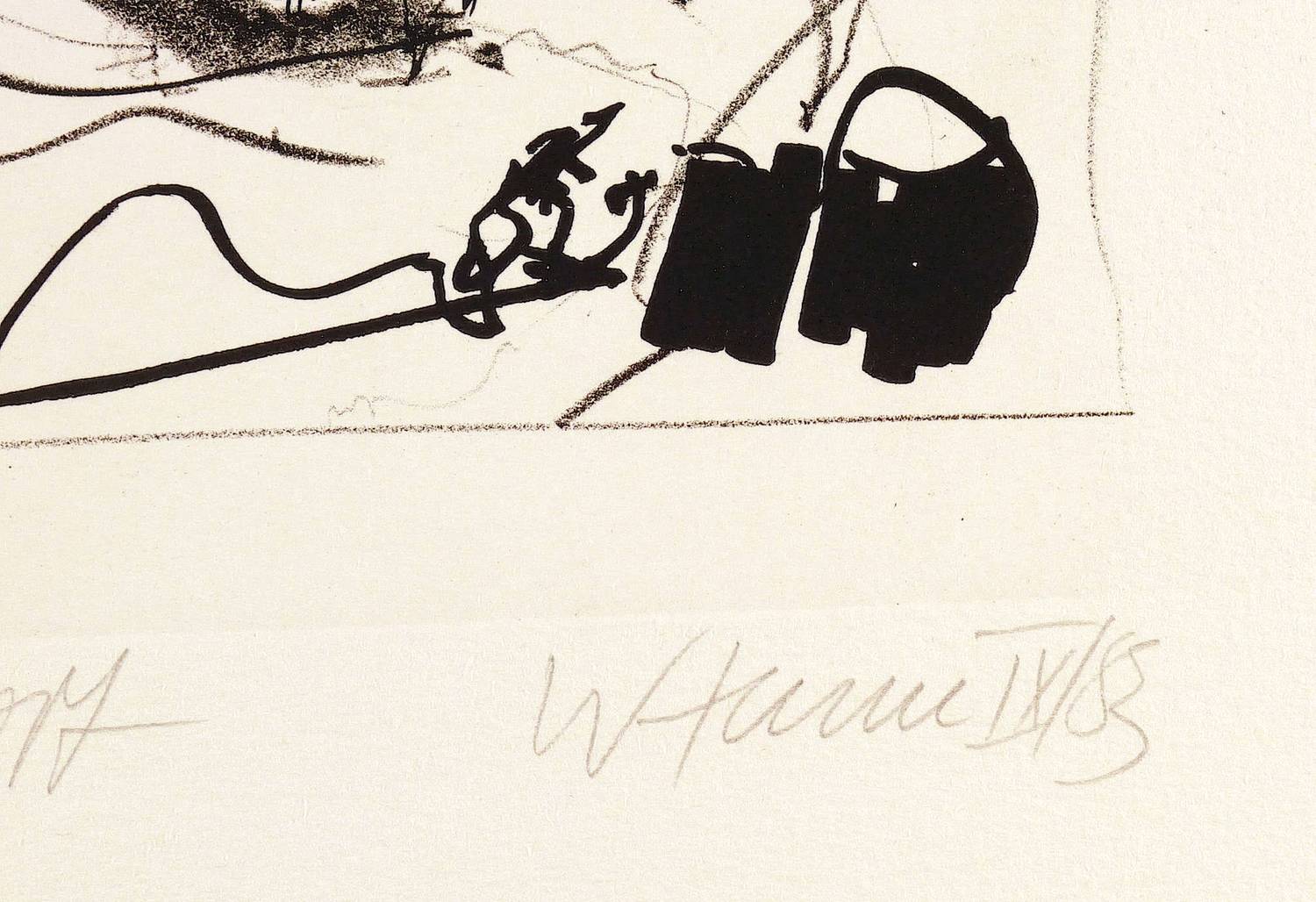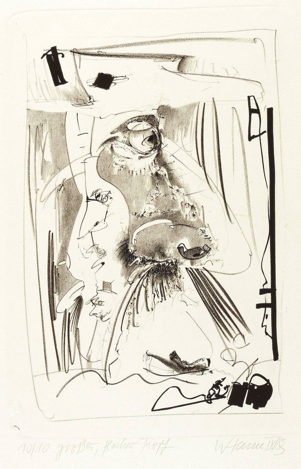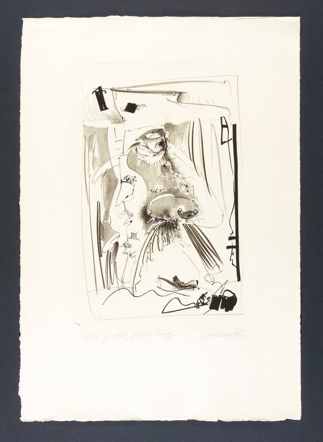 1983. Lithografie / Kreide- & Pinsellithografie, in Schwarz, auf Hahnemühle-Bütten. – Von Wolfgang Henne. – Auflage Exemplar Nr. 10/10. – 34,0 x 23,0 cm (Darstellung / Druckbild), 56,5 x 39 cm (Blatt).