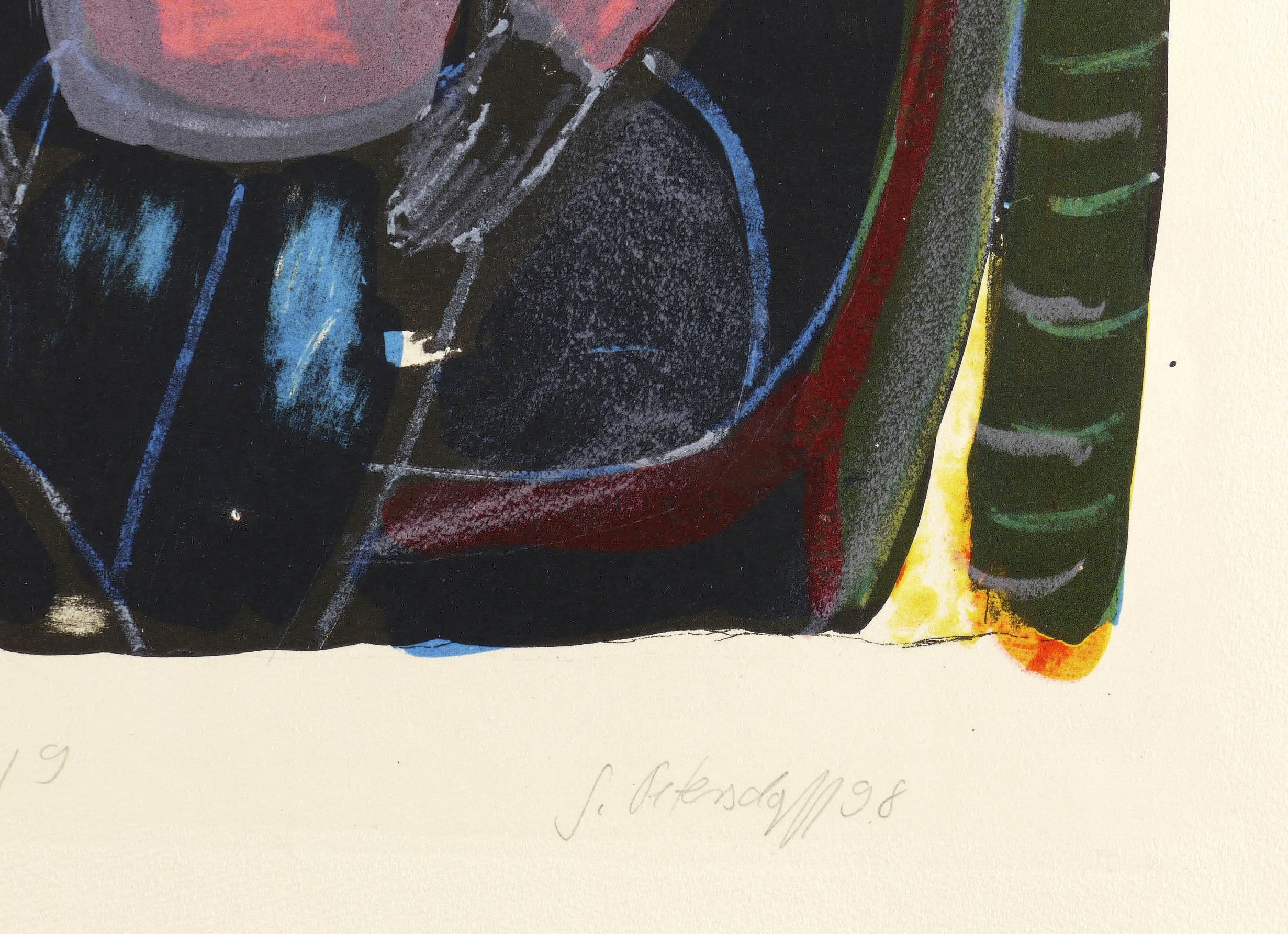 1998. Farblithografie / Pinsel- & Kreidelithografie, in 5 Farben, auf gelbem Velin. – Von Gudrun Petersdorff. – Auflage Exemplar Nr. 8/9. – 44,6 x 33,9 cm (Darstellung / Druckbild), 53 x 45 cm (Blatt).