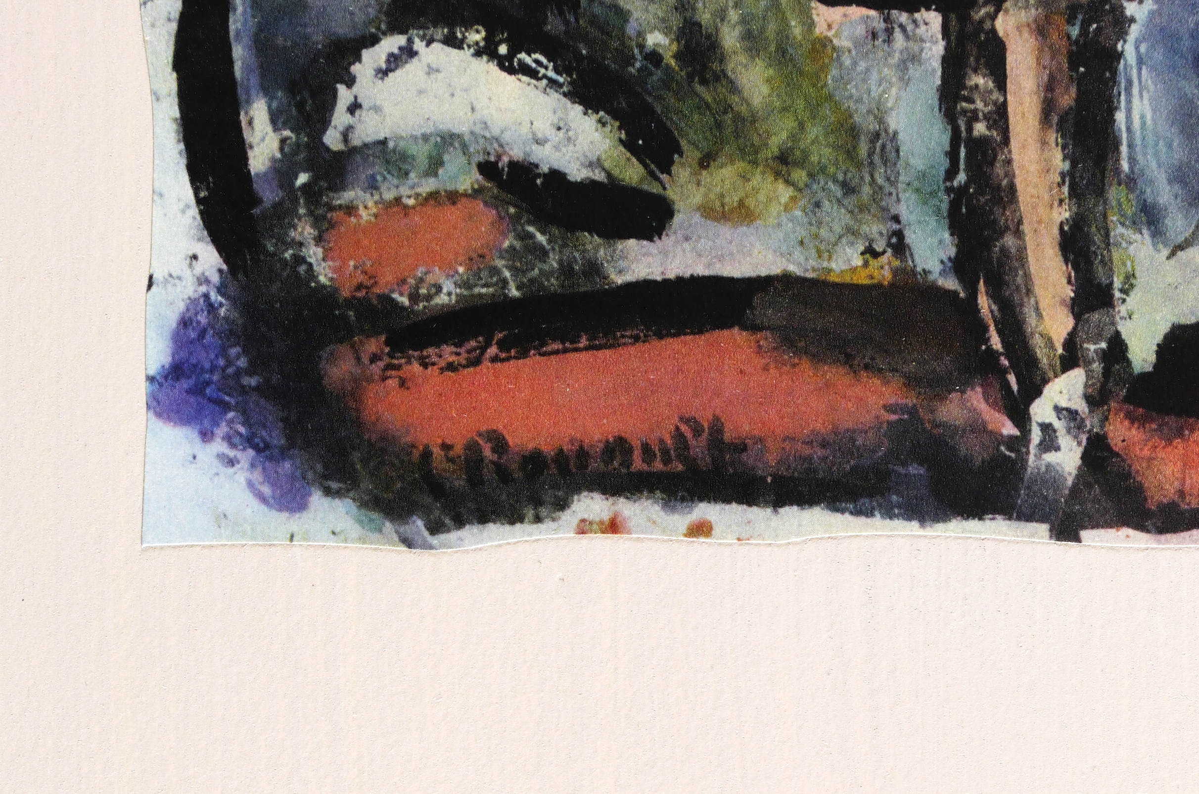 1943. Farboffsetlithografie, nach Gouache, in 8 Farben, auf leichtem Velin. – Originale Künstlergrafik, von Georges Rouault. – 26,9 x 20,8 cm (Darstellung / Blatt), 43 x 33 cm (Trägerblatt).