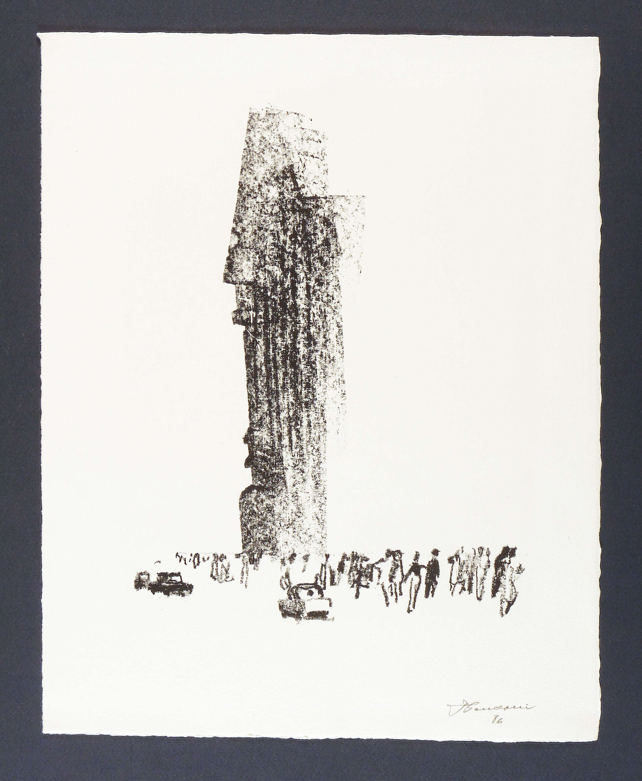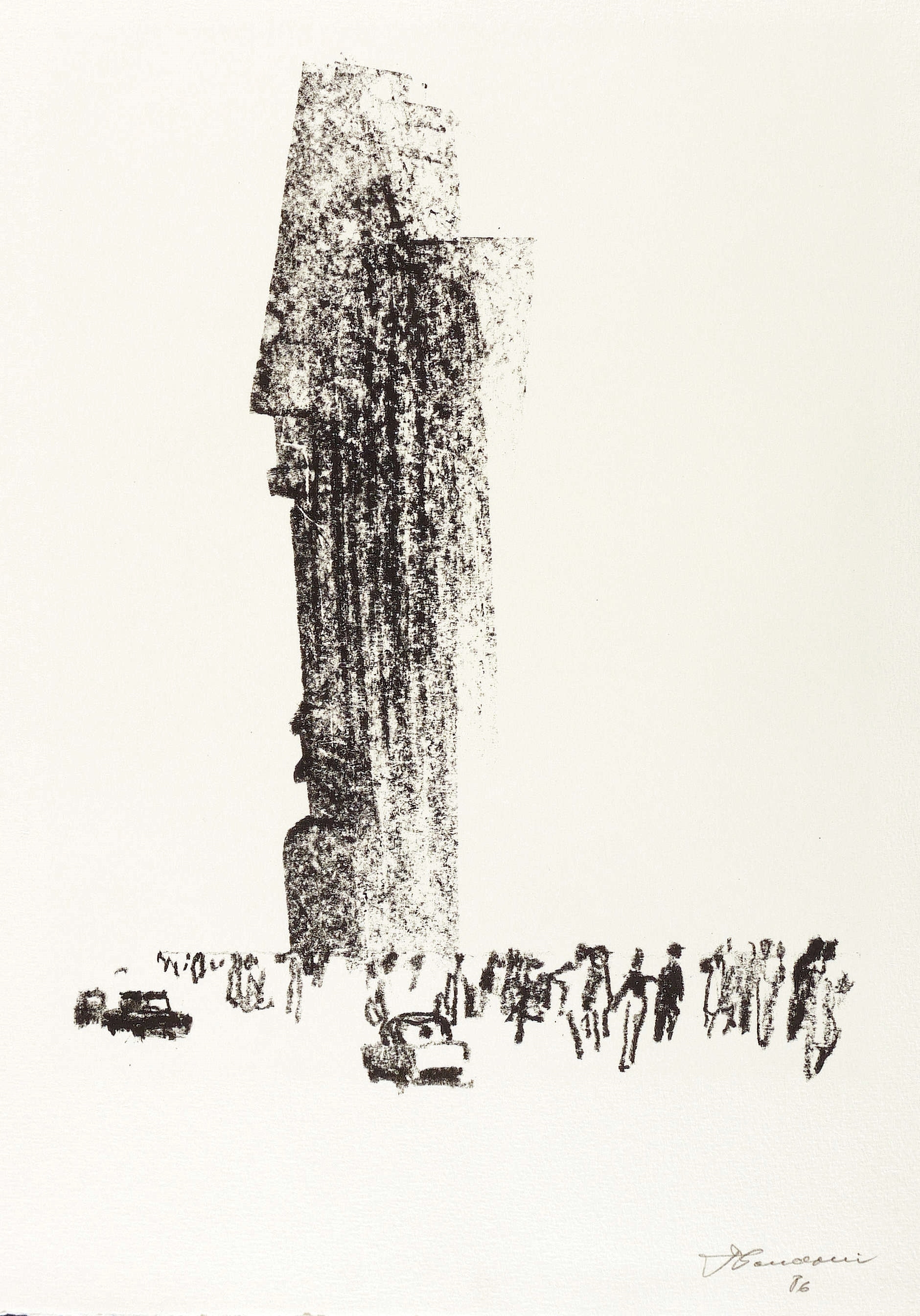 1986. Lithografie / Kreidelithografie, in Schwarz, auf hellem Büttenkarton. – Originale Künstlergrafik, von Gerhard Bondzin. – 29,3 x 22,1 cm (Darstellung), 40 x 31,5 cm (Blatt).