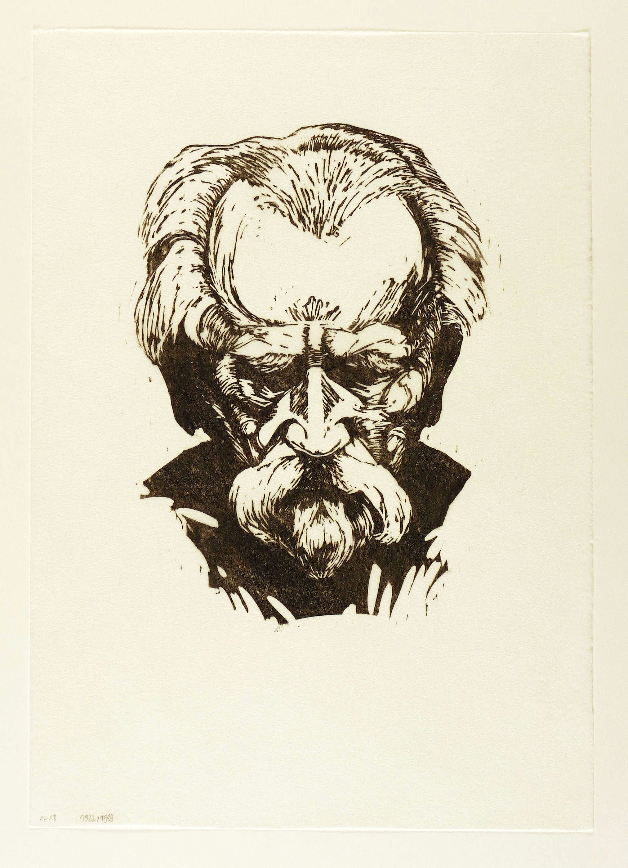 1922/1993. Linolschnitt, in Schwarz, auf leichtem Japanbütten. – Originale Künstlergrafik, von Fritz Erler. – Auflage Exemplar Nr. 1/18. – 26,2 x 20,0 cm (Darstellung / Druckbild), 41,5 x 29,5 cm (Blatt).