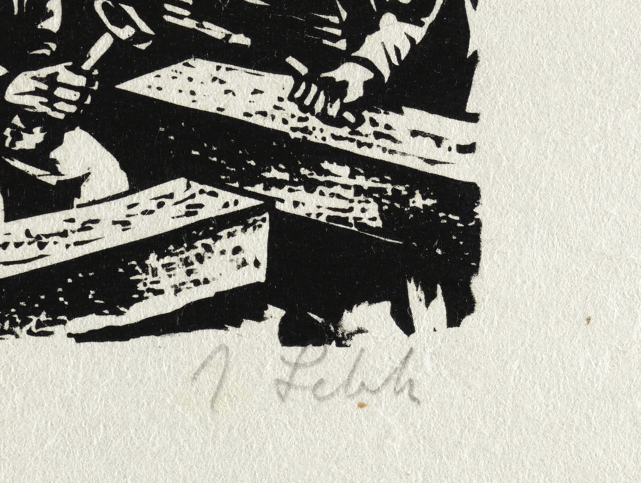 Johannes Lebek (1901 Zeitz - 1985 Adelebsen). Deutscher Holzschneider, Grafiker und Illustrator. Sohn eines Grubenarbeiters. Nach dem Tod des Vaters 1911-15 Waisenhaus in Torgau. 1915-17 Lehre zum Tischler in Birnbaum an der Warthe (heute Międzychód). 1920-22 erster Zeichenunterricht bei Anton Klamroth in Leipzig. 1926 Mitglied des Ostthüringer Künstlerbundes. 1931-34 Studium er an der Akademie für graphische Künste und Buchgewerbe Leipzig, Meisterschüler bei Hans Alexander Müller. 1934-39 entstanden die Holzschnitt-Zyklen "Pommersche Landschaften" und "Knapsackbilder". 1937 Silbermedaille der Weltausstellung in Paris für das Blockbuch "Elisabethchen". 1939-44 Technischer Zeichner bei den Junkers Flugzeug- und Motorenwerken in Dessau. 1945/46 Einberufung in die Wehrmacht und amerikanische Kriegsgefangenschaft in Frankreich. Ab 1946 als freischaffender Künstler in Zeitz. 1954-58 Dozent für Naturstudium und Leiter Holzschnittwerkstatt an der Hochschule für Grafik und Buchkunst Leipzig (HGB). 1953 Gründungsmitglied der Internationalen Holzschneidervereinigung XYLON. 1958 Entlassung aus der HGB Leipzig aus politischen Gründen, nur noch eingeschränkte Möglichkeiten der Ausstellung und Veröffentlichung seiner Werke (z.B. in christlichen Verlagen). 1969 Ausreise aus der DDR und Ansiedlung in Adelebsen bei Göttingen. 1971-82 Edition der Holzschnitt-Serie "Lebenserinnerungen" als Beilage in der Kunstzeitschrift "Illustration 63". 2001 Kunst- und Museumspädagogisches Zentrum Johannes Lebek in Zeitz.