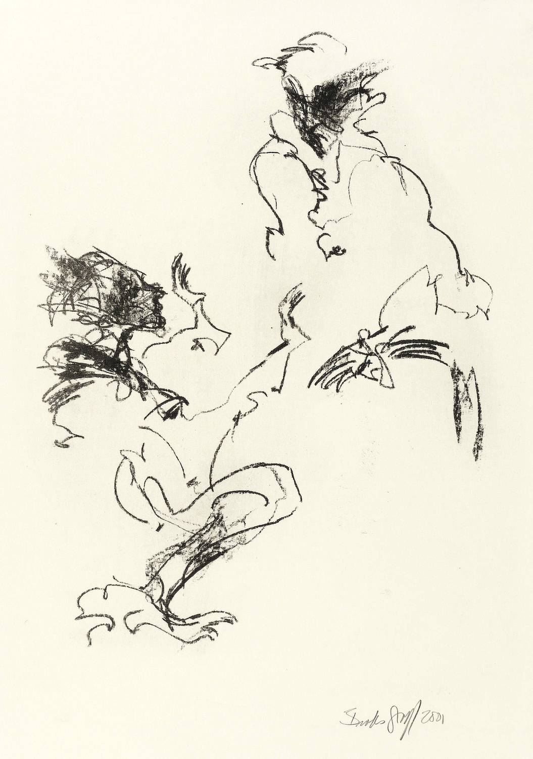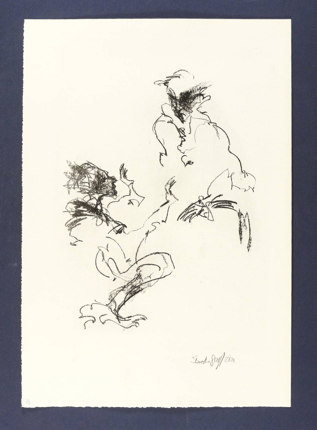 2001. Lithografie / Kreidelithografie, in Schwarz, auf glattem hellchamois Karton. – Originale Künstlergrafik, von Janet Brooks-Gerloff. – Auflage Exemplar Nr. 3/3. – 33,8 x 24,9 cm (Darstellung / Druckbild), 50 x 35 cm (Blatt).