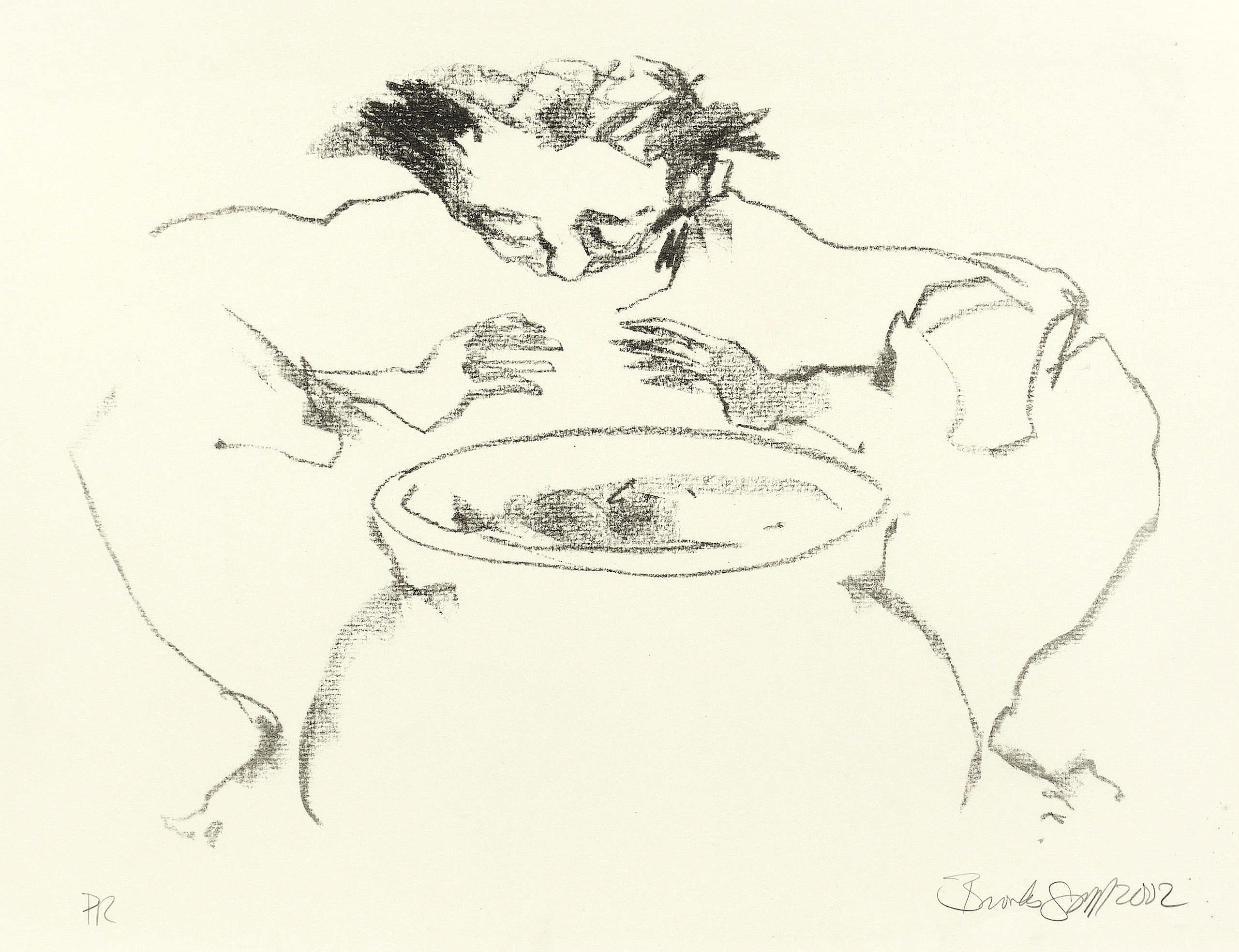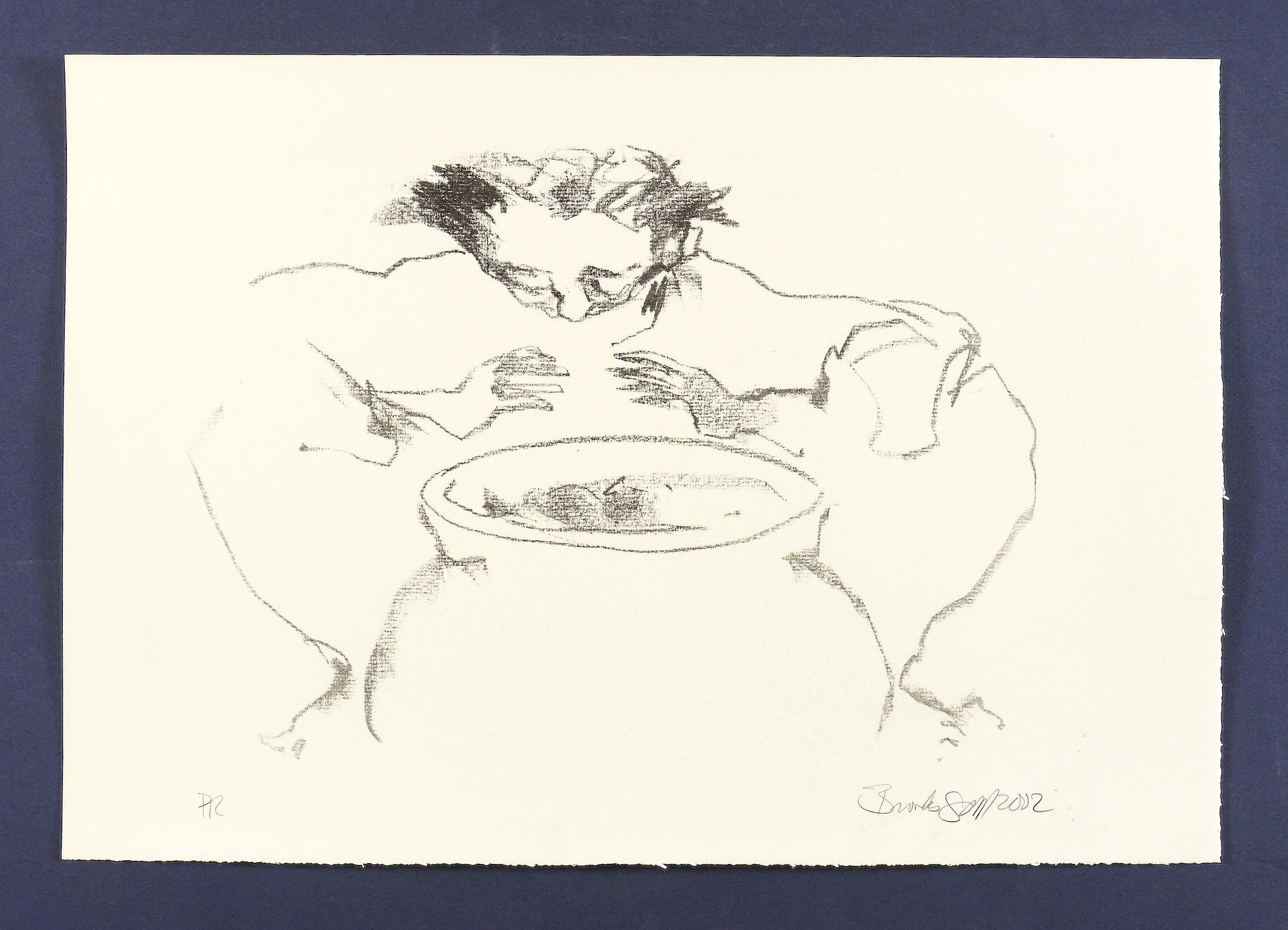 2002. Lithografie / Kreidelithografie, in Schwarz, auf glattem hellchamois Karton. – Von Janet Brooks-Gerloff. – Probedruck. – 26,6 x 36,9 cm (Darstellung / Druckbild), 35 x 50 cm (Blatt).