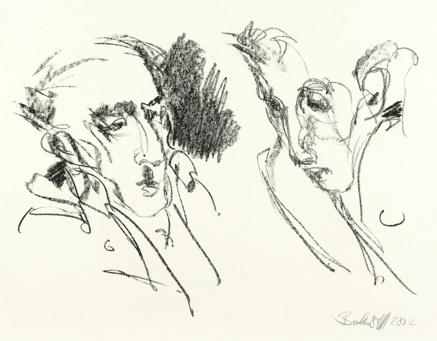 2002. Lithografie / Kreidelithografie, in Schwarz, auf weißem Hahnemühle-Bütten. – Originale Künstlergrafik, von Janet Brooks-Gerloff. – Probedruck. – 27,0 x 37,2 cm (Darstellung / Druckbild), 39,5 x 54 cm (Blatt).