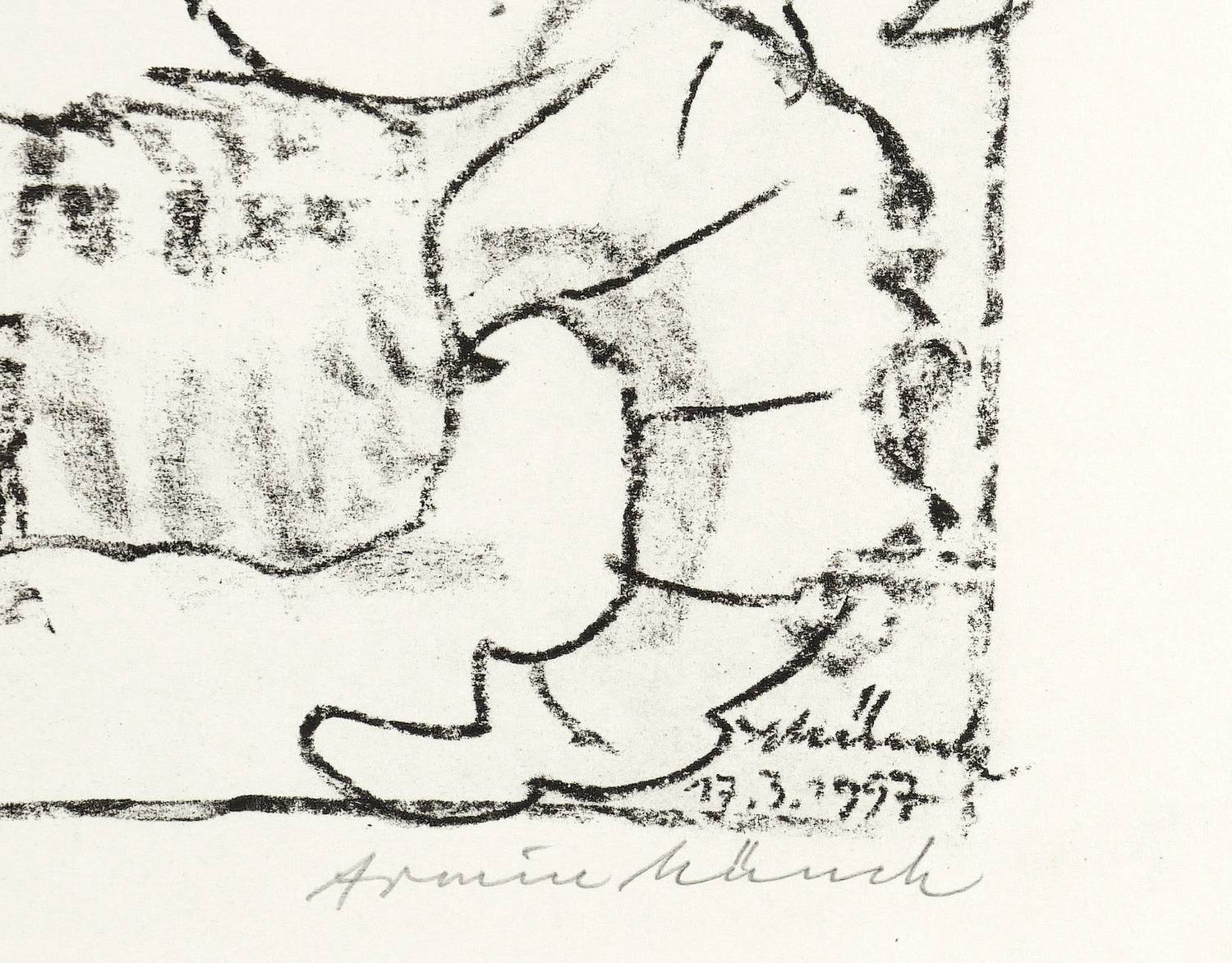 1997. Lithografie / Kreidelithografie, in Schwarz, auf hellchamois Hahnemühle. – Originale Künstlergrafik, von Armin Münch. – Auflage Exemplar Nr. 2/30. – 38,0 x 27,5 cm (Darstellung / Druckbild), 54 x 40 cm (Blatt).