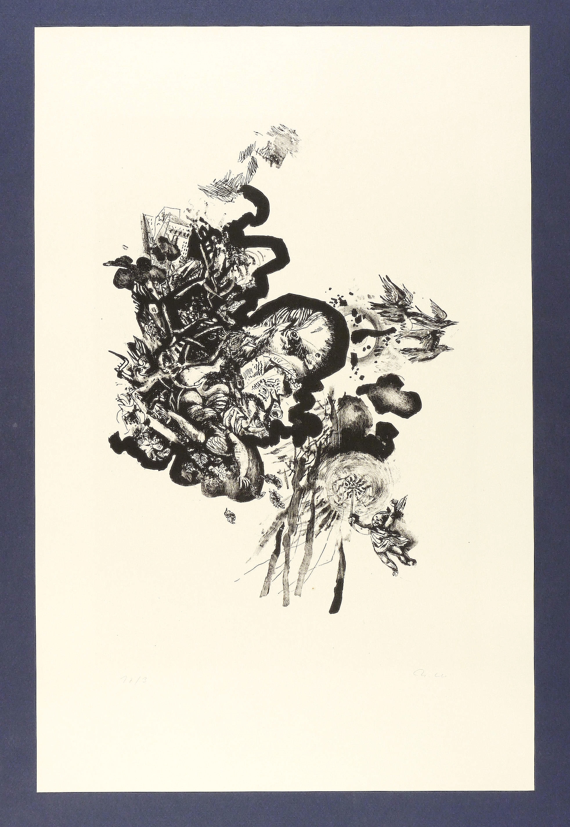 1969. Lithografie / Kreide-, Pinsel- & Federlithografie, partiell geschabt, in Schwarz, auf hellgelbem Karton. – Originale Künstlergrafik, von Ursula Mattheuer-Neustädt. – Auflage Exemplar Nr. 17/50. – 36,1 x 26,4 cm (Darstellung / Druckbild), 57 x 37 cm (Blatt).
