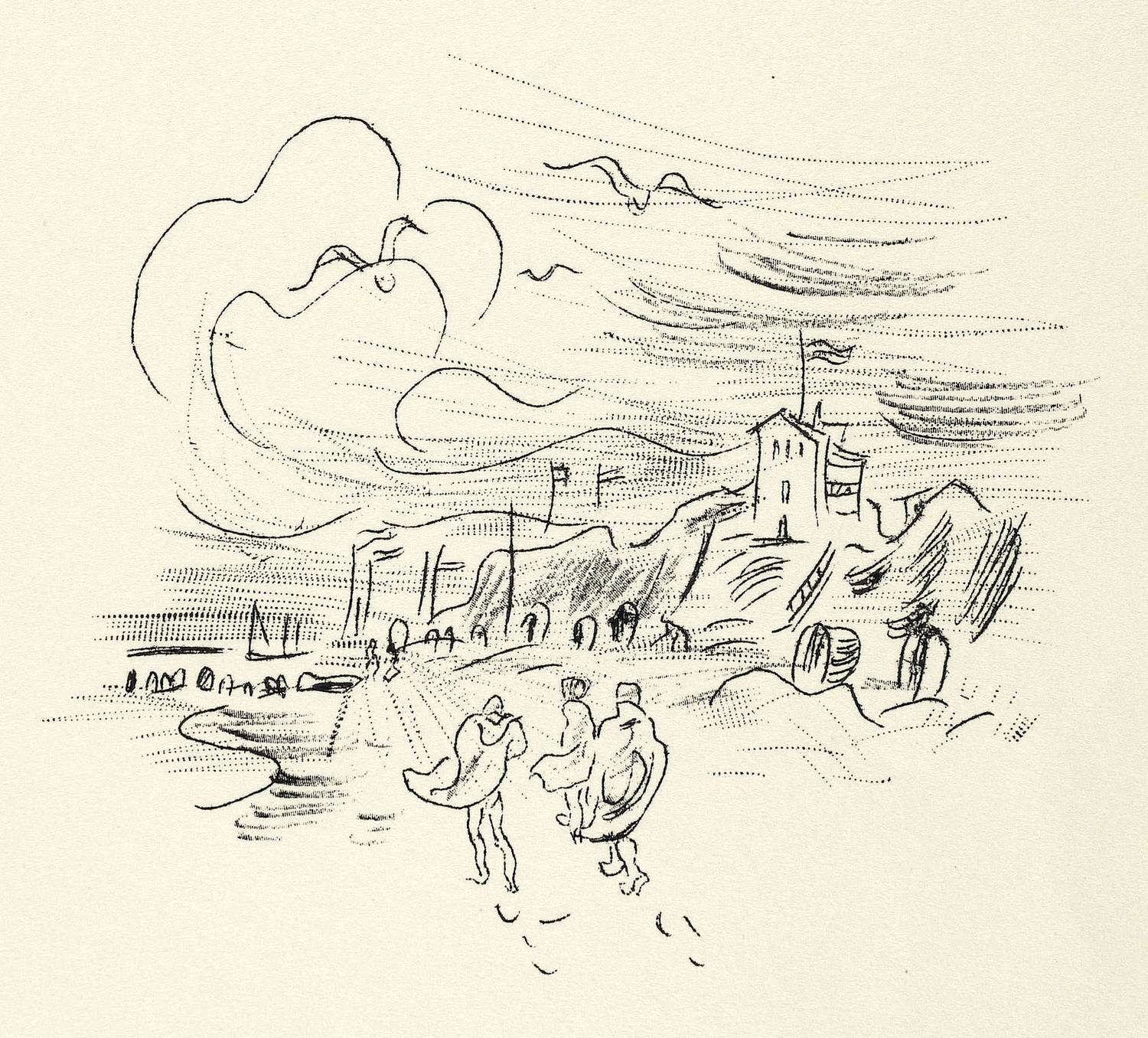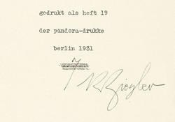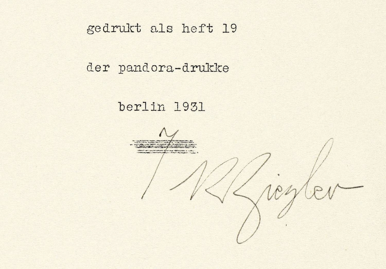 Rogge-Elsässer P. 19. – Aus: Richard Ziegler, Tag und Jahreszeiten. Sylt Sommer 1930 (Berlin: Selbstverlag 1931), Bd. 19. pandora-Druck. – Auf dem beigegebenen Impressum-Blatt in schwarzer Feder signiert. Verso in Bleistfit bezeichnet. – Originaler Abzug von der direkt bearbeiteten Wachsmatritze. – Sehr guter Zustand.
