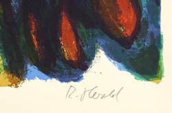 1971. Farbsiebdruck / Farbserigrafie, in 6 Farben, auf glattem hellgelbem Karton. – Originale Künstlergrafik, von Rainer Herold. – 26,4 x 43,5 cm (Darstellung / Druckbild), 31 x 46,5 cm (Blatt).
