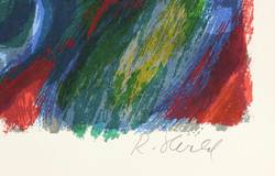 1971. Farbsiebdruck / Farbserigrafie, in 6 Farben, auf glattem hellgelbem Karton. – Originale Künstlergrafik, von Rainer Herold. – 26,9 x 43,9 cm (Darstellung / Druckbild), 30,5 x 46,5 cm (Blatt).