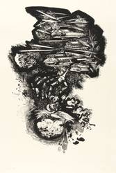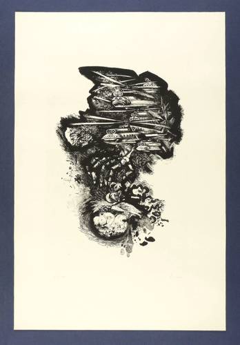 1969. Lithografie / Kreide-, Pinsel- & Federlithografie, partiell geschabt, in Schwarz, auf hellgelbem Karton. – Originale Künstlergrafik, von Ursula Mattheuer-Neustädt. – Auflage Exemplar Nr. 17/50. – 36,0 x 24,5 cm (Darstellung / Druckbild), 60 x 40 cm (Blatt).