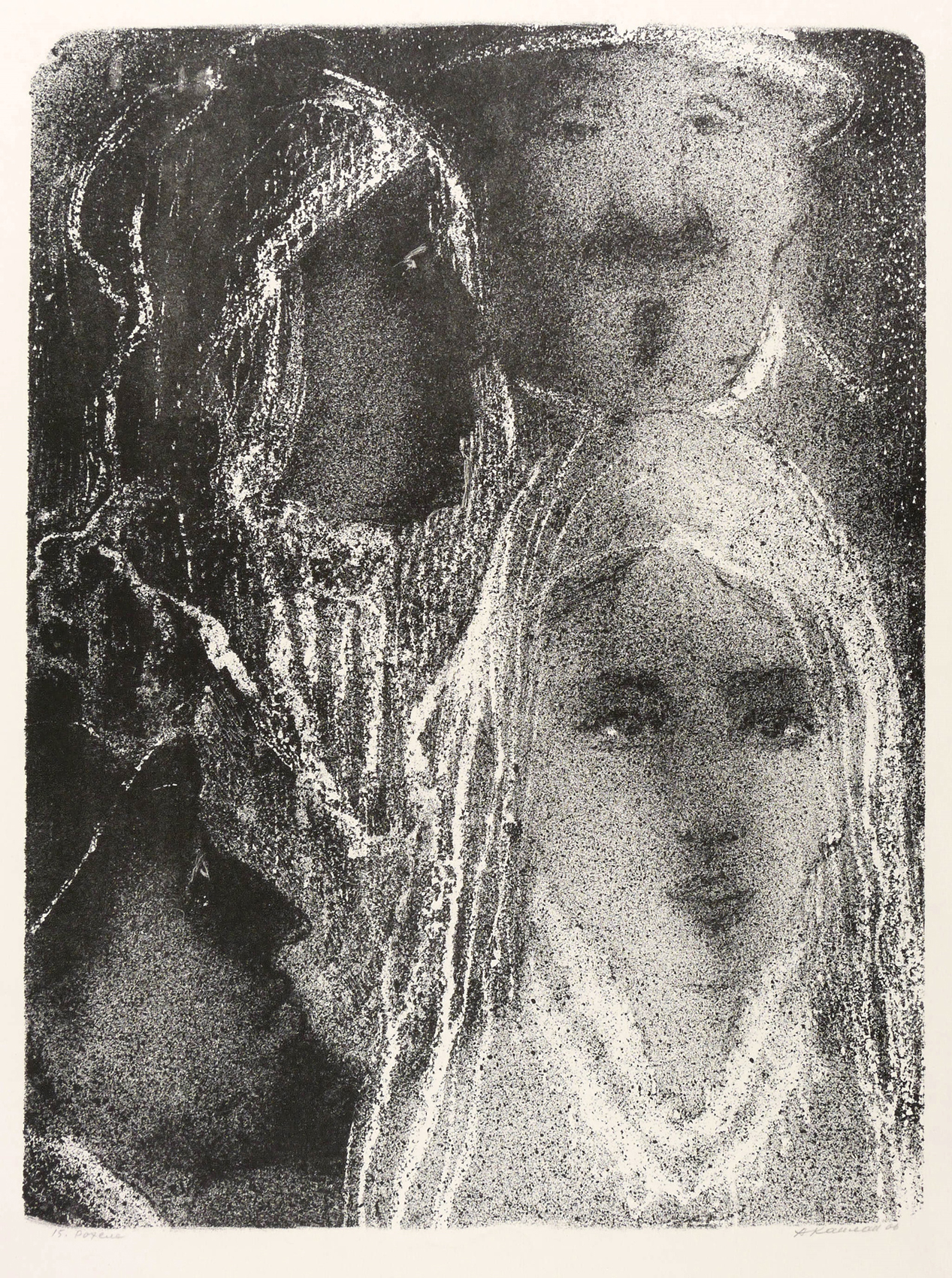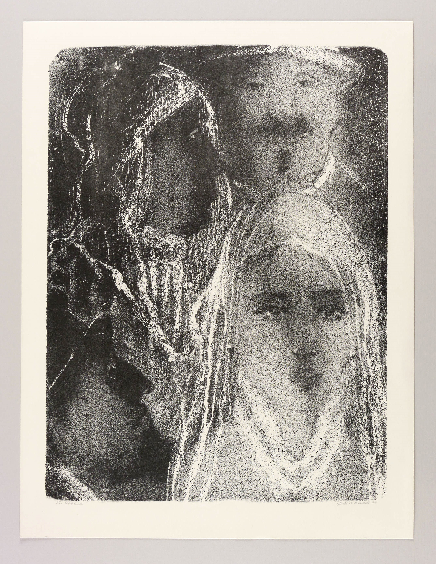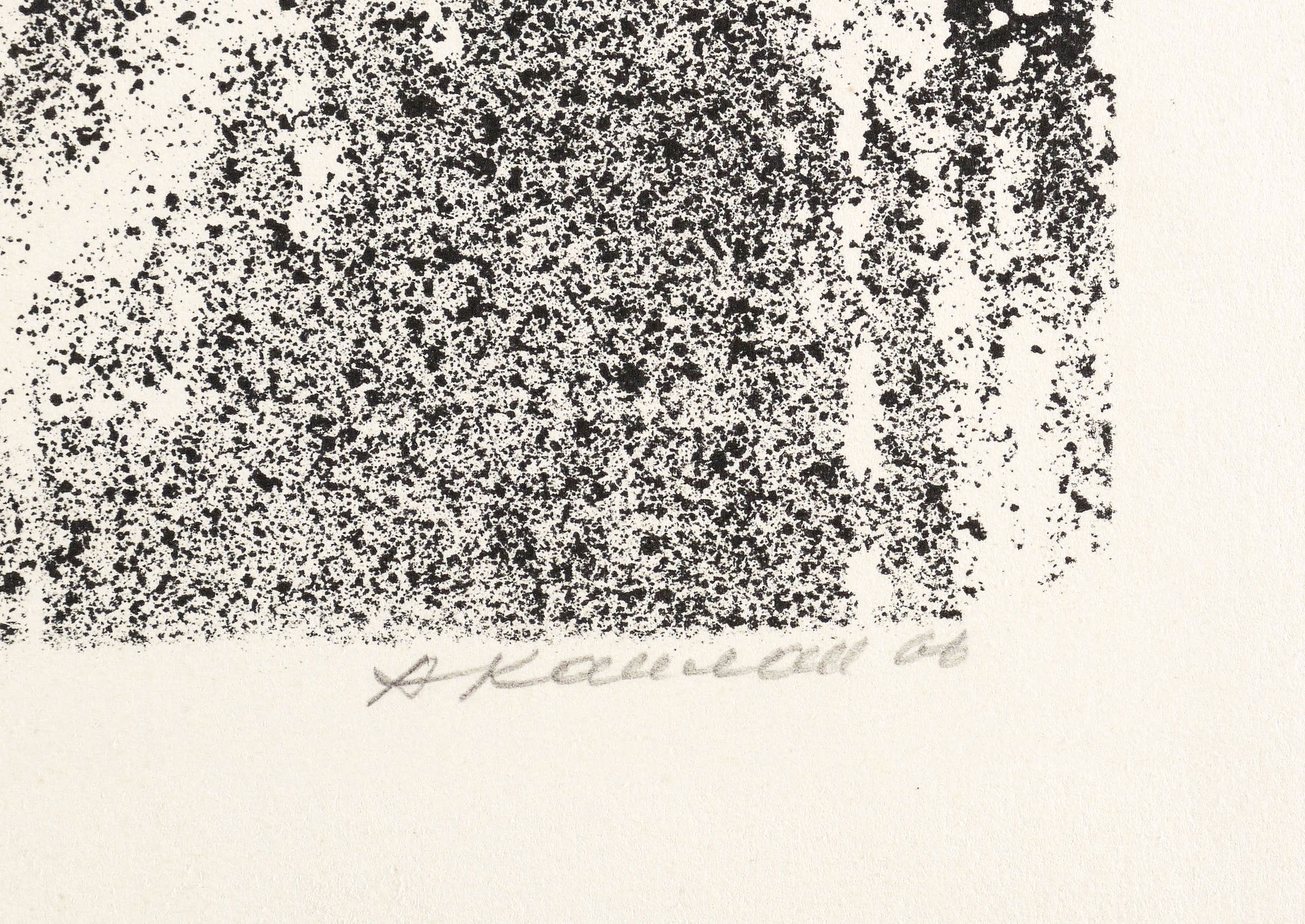 1966. Lithografie / Pinsellithografie, partiell gespritzt, in Schwarz, auf hellgelbem Karton. – Originale Künstlergrafik, von Anatoli Kaplan. – 54,8 x 41,0 cm (Darstellung / Druckbild), 62 x 48 cm (Blatt).