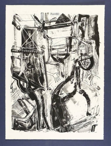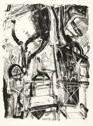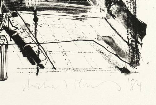 1984. Lithografie / Pinsel- & Kreidelithografie, partiell geschabt, in Schwarz, auf weißem Hahnemühle-Bütten. – Originale Künstlergrafik, von Michael Kunert. – Auflage Exemplar Nr. 1/55. – 48,1 x 35,7 cm (Darstellung / Stein), 53,5 x 39,5 cm (Blatt).