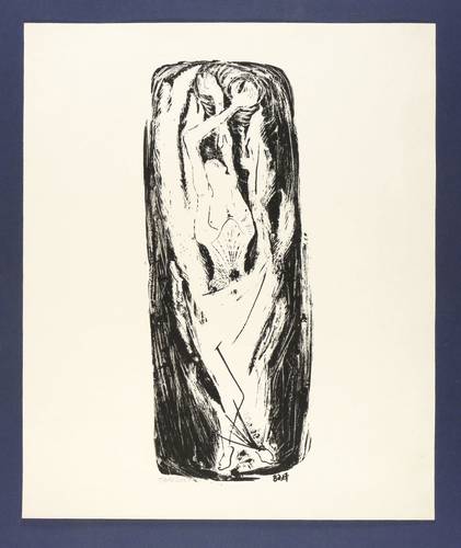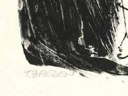 1968. Lithografie / Kreide- & Pinsellithografie, partiell geschabt, in Schwarz, auf Kupferdruckkarton. – Originale Künstlergrafik, von Theo Balden. – 51,0 x 20,0 cm (Darstellung), 60 x 50 cm (Blatt).