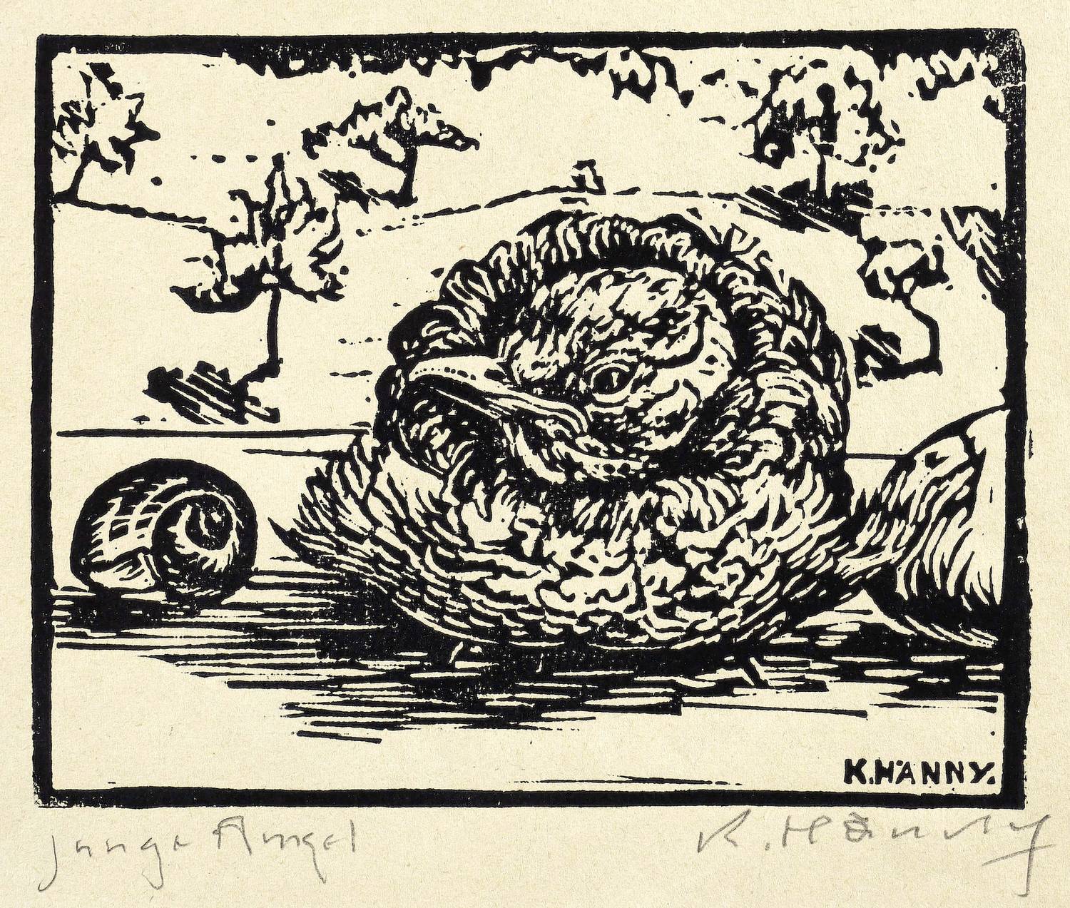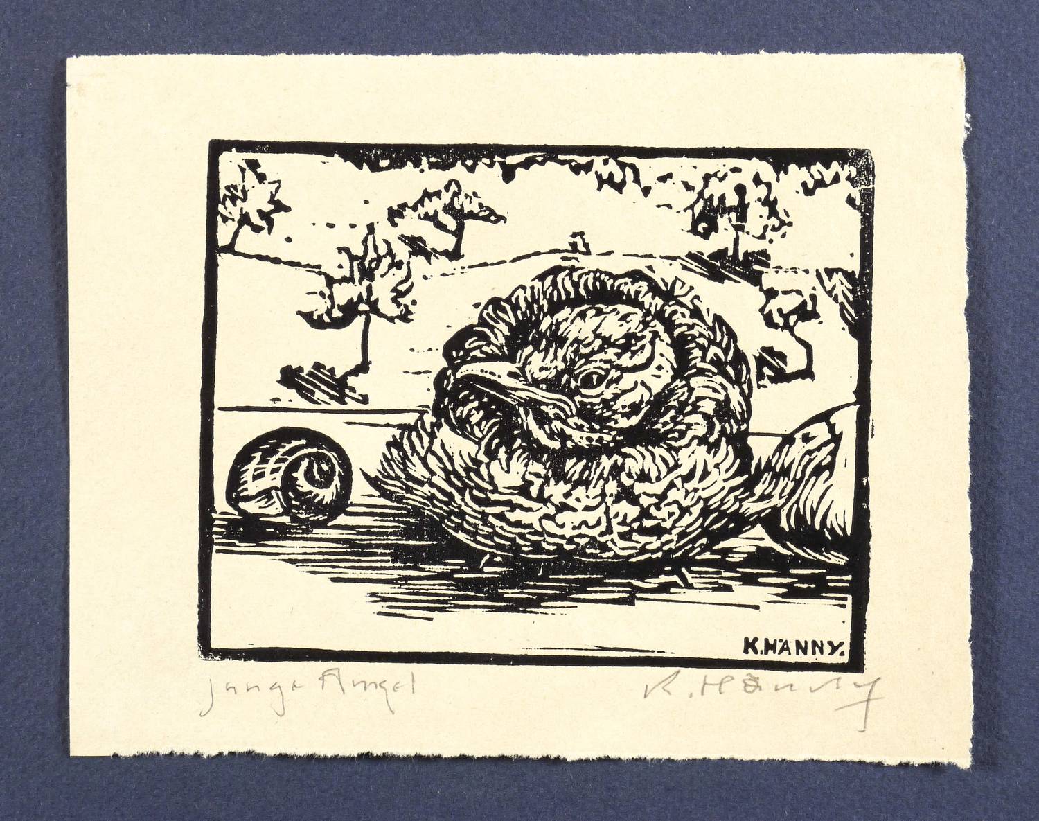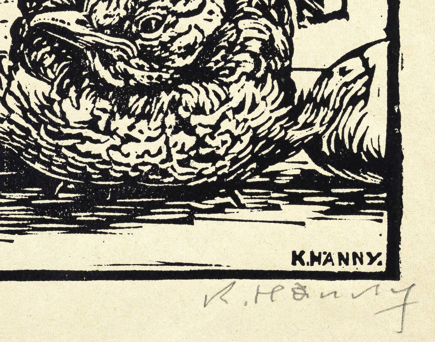 Um 1910. Holzschnitt, in Schwarz, auf gelblichem Kupferdruckpapier. – Originale Künstlergrafik, von Karl Hänny. – 9,2 x 11,8 cm (Darstellung / Druckstock), 13 x 16 cm (Blatt).