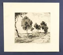 Um 1920. Radierung / Strichätzung & Kaltnadel, in Schwarz, auf hartem gelbem Büttenpapier. – Originale Künstlergrafik, von Hans Kaumann. – 17,6 x 20,6 cm (Darstellung / Platte), 28 x 32 cm (Blatt).