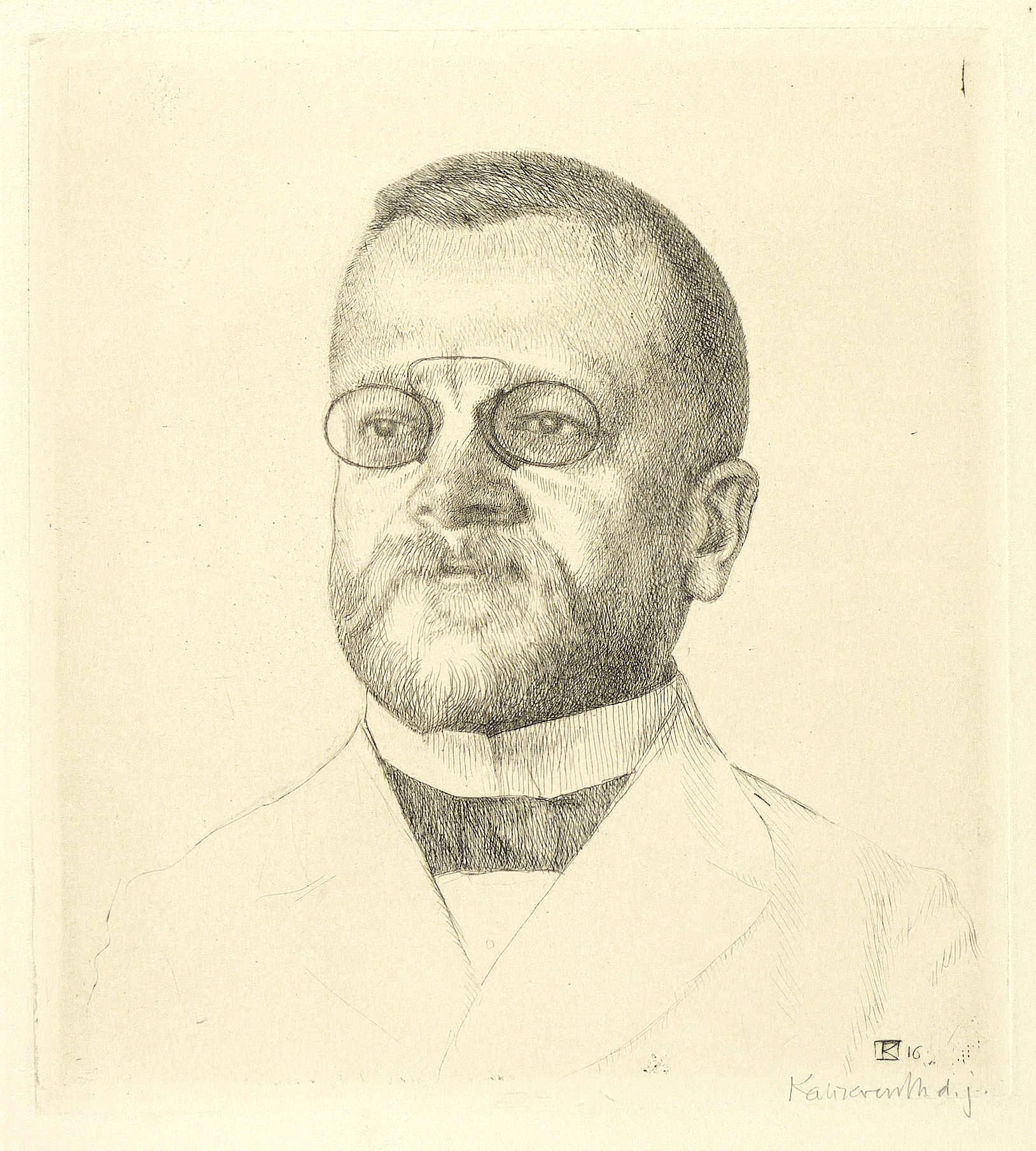 Rechts unten in Bleistift signiert: ″Kalckreuth d.J.″ In der Platte rechts unten Monogramm und Jahr. Am unteren Blattrand von fremder Hand bezeichnet, – Fritz Schumacher (1869 Bremen - 1947 Hamburg) war Architekt, Stadtplaner, Baubeamter und Hochschullehrer, der viele Jahre als Oberbaudirektor in Hamburg wirkte und an der Gründung des Deutschen Werkbundes beteiligt war. – Originalrandiges Exemplar. Im Rand leichte Lagerspuren. Guter Zustand