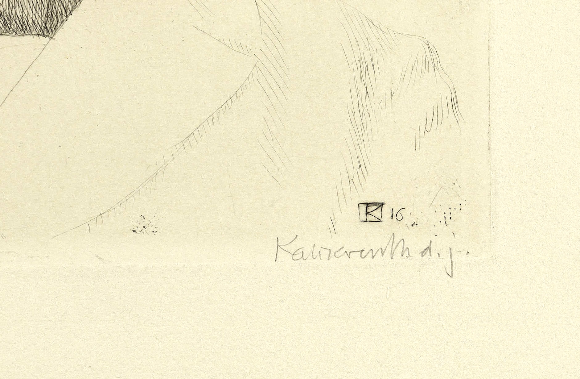 1916. Radierung / Strichätzung, in Schwarz, auf gelblichem Kupferdruckkarton. – Originale Künstlergrafik, von Leopold Graf von Kalckreuth. – 19,8 x 18,1 cm (Darstellung / Platte), 45 x 31 cm (Blatt).