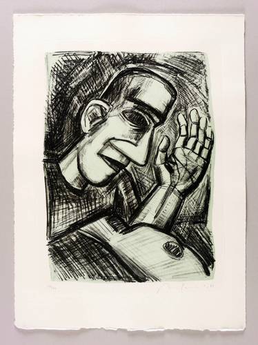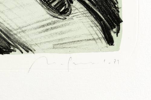 1989. Tonlithografie / Kreidelithografie, in Schwarz, über blau-grüner Tonplatte, auf Hahnemühle-Bütten. – Originale Künstlergrafik, von Nuria Quevedo. – Auflage Exemplar Nr. 59/80. – 39,5 x 29,0 cm (Darstellung / Druckbild), 54 x 40 cm (Blatt).