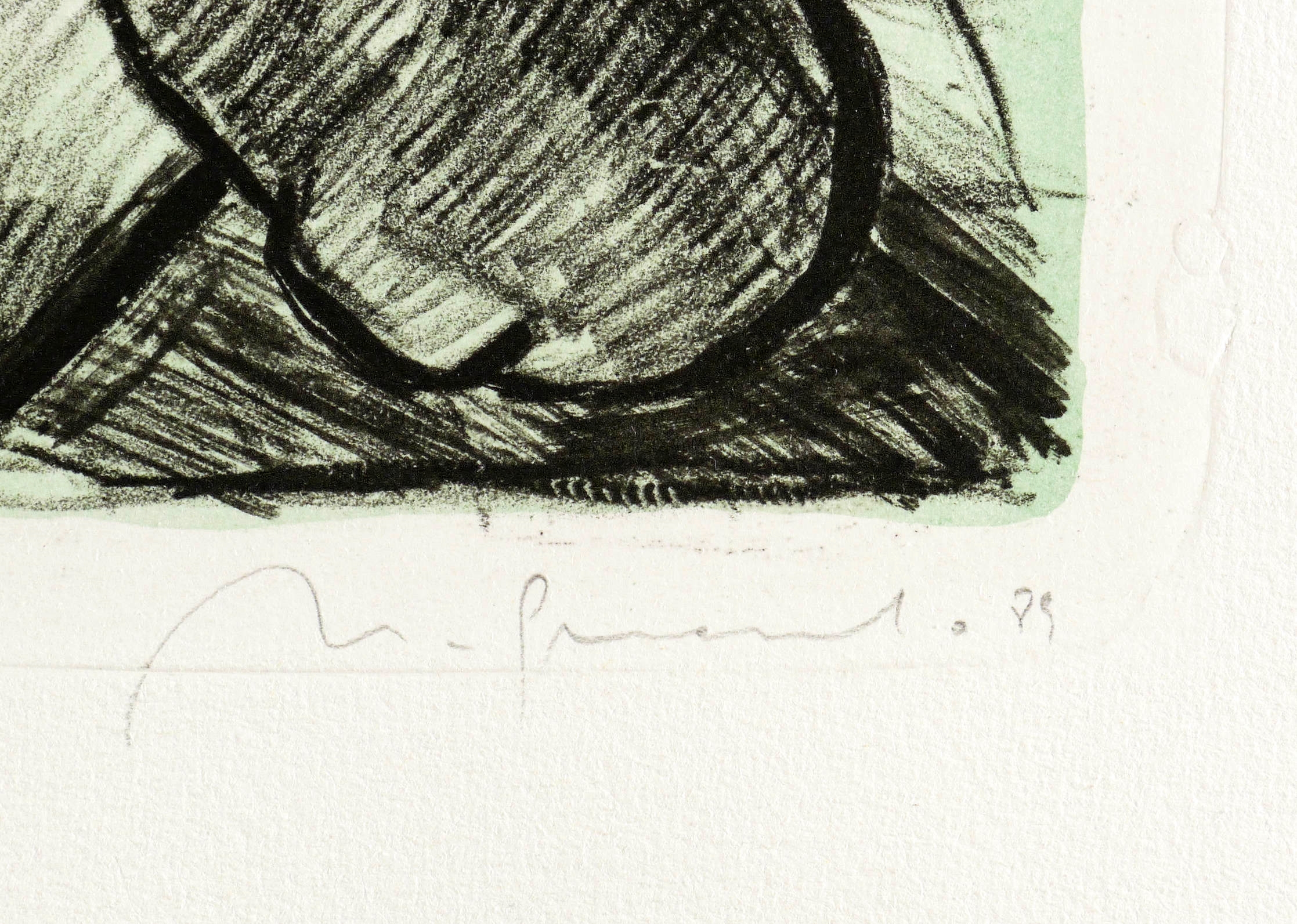 1989. Tonlithografie / Kreidelithografie, in Schwarz, über blau-grüner Tonplatte, auf Hahnemühle-Bütten. – Originale Künstlergrafik, von Nuria Quevedo. – Auflage Exemplar Nr. 59/80. – 39,2 x 29,4 cm (Darstellung / Druckbild), 54 x 40 cm (Blatt).