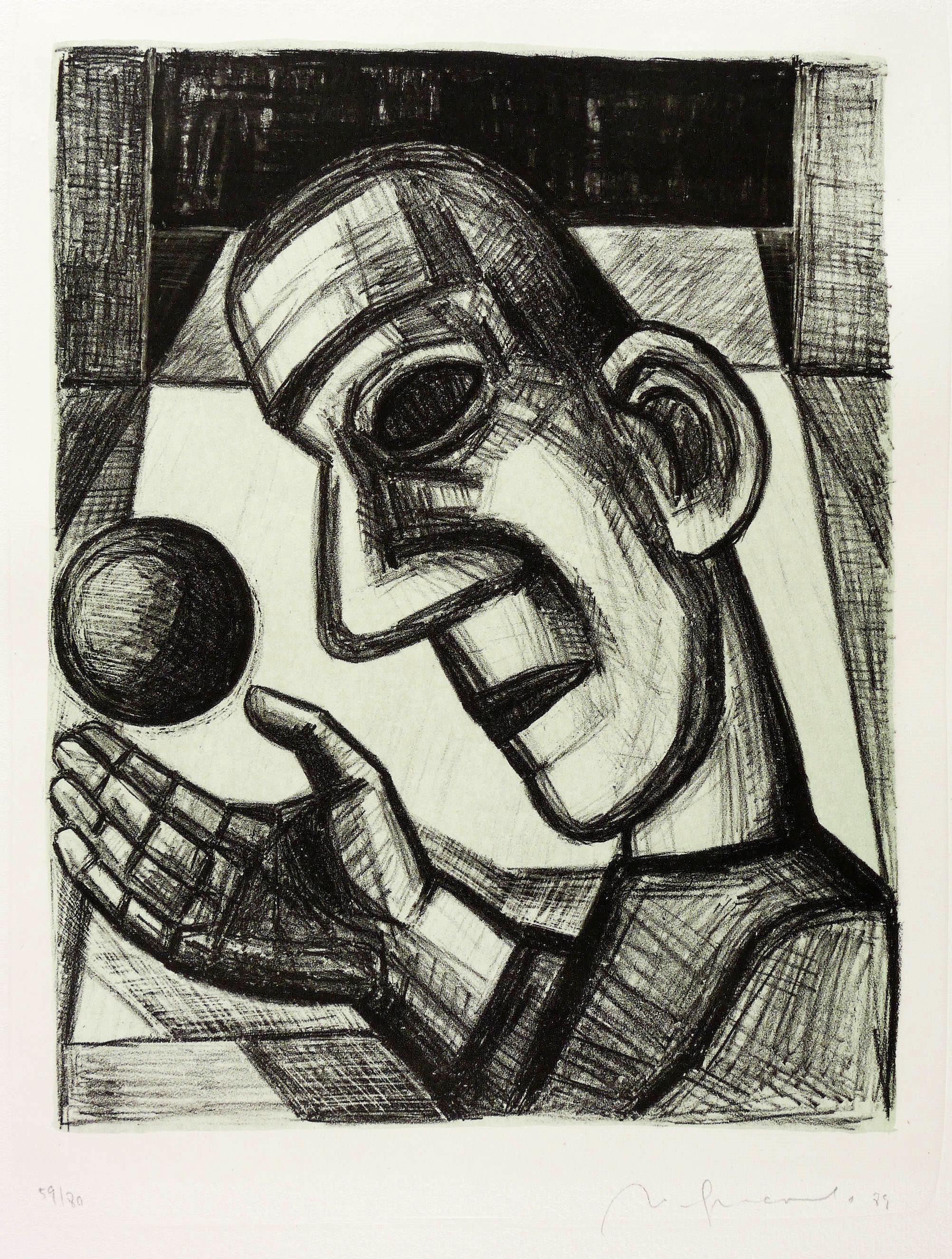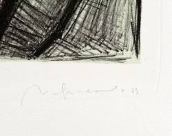 Wetterney 381. – Aus: Nuria Quevedo, Das Leben ist Traum (Berlin: Berliner Graphikpresse 1989). – Rechts unten in Bleistift signiert und datiert: ″N. Quevedo 89″. Links Auflagenbezeichnung. Wasserzeichen der Papiermühle. – Abzug vom Stein durch den Drucker Klaus Wilfert. – Ohne Tadel. Sehr guter Zustand.