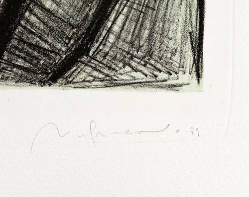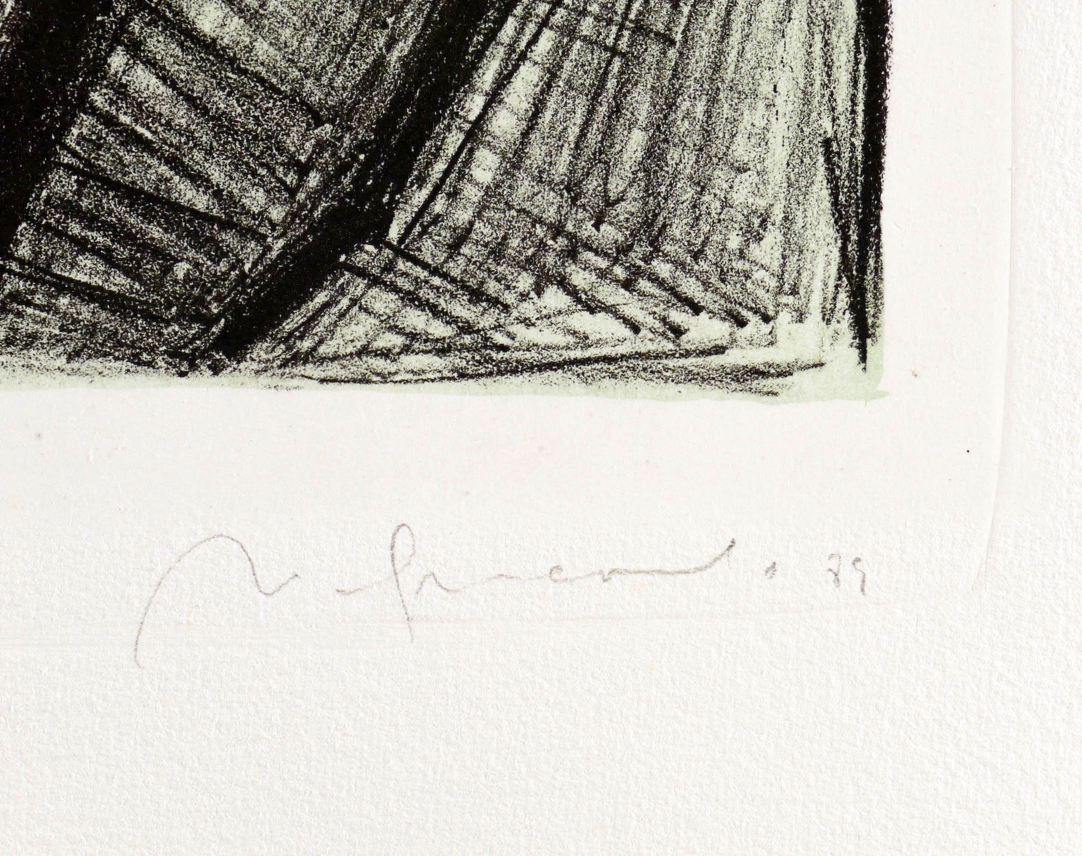 1989. Tonlithografie / Kreidelithografie, in Schwarz, über blau-grüner Tonplatte, auf Hahnemühle-Bütten. – Originale Künstlergrafik, von Nuria Quevedo. – Auflage Exemplar Nr. 59/80. – 36,0 x 28,5 cm (Darstellung / Druckbild), 54 x 40 cm (Blatt).