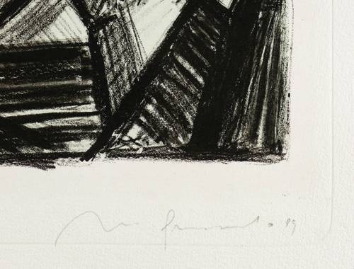 Wetterney 388. – Aus: Nuria Quevedo, Das Leben ist Traum (Berlin: Berliner Graphikpresse 1989). – Rechts unten in Bleistift signiert und datiert: ″N. Quevedo 89″. Links Auflagenbezeichnung. Wasserzeichen der Papiermühle. – Abzug vom Stein durch den Drucker Klaus Wilfert. – Ohne Tadel. Sehr guter Zustand.