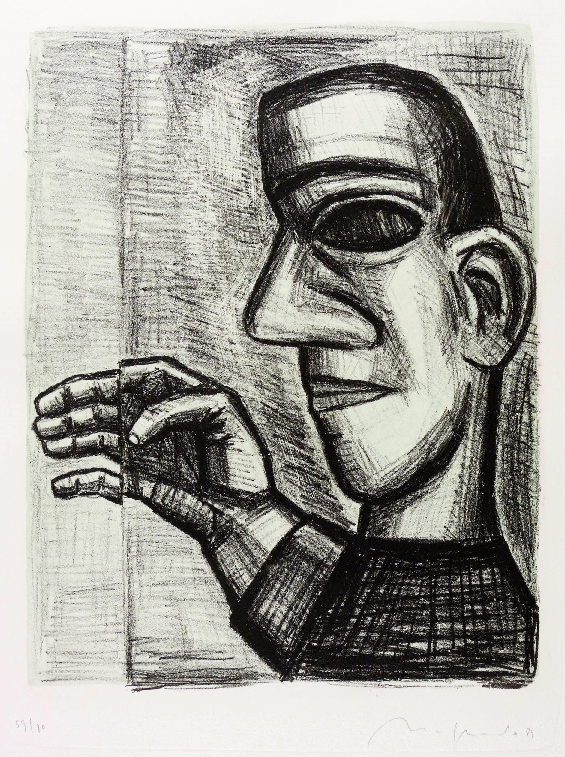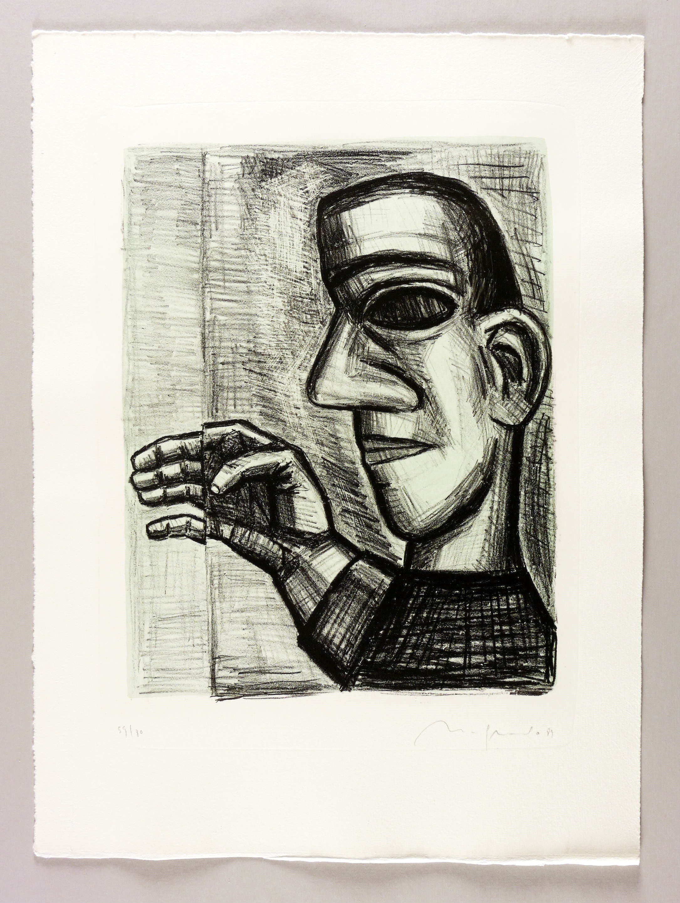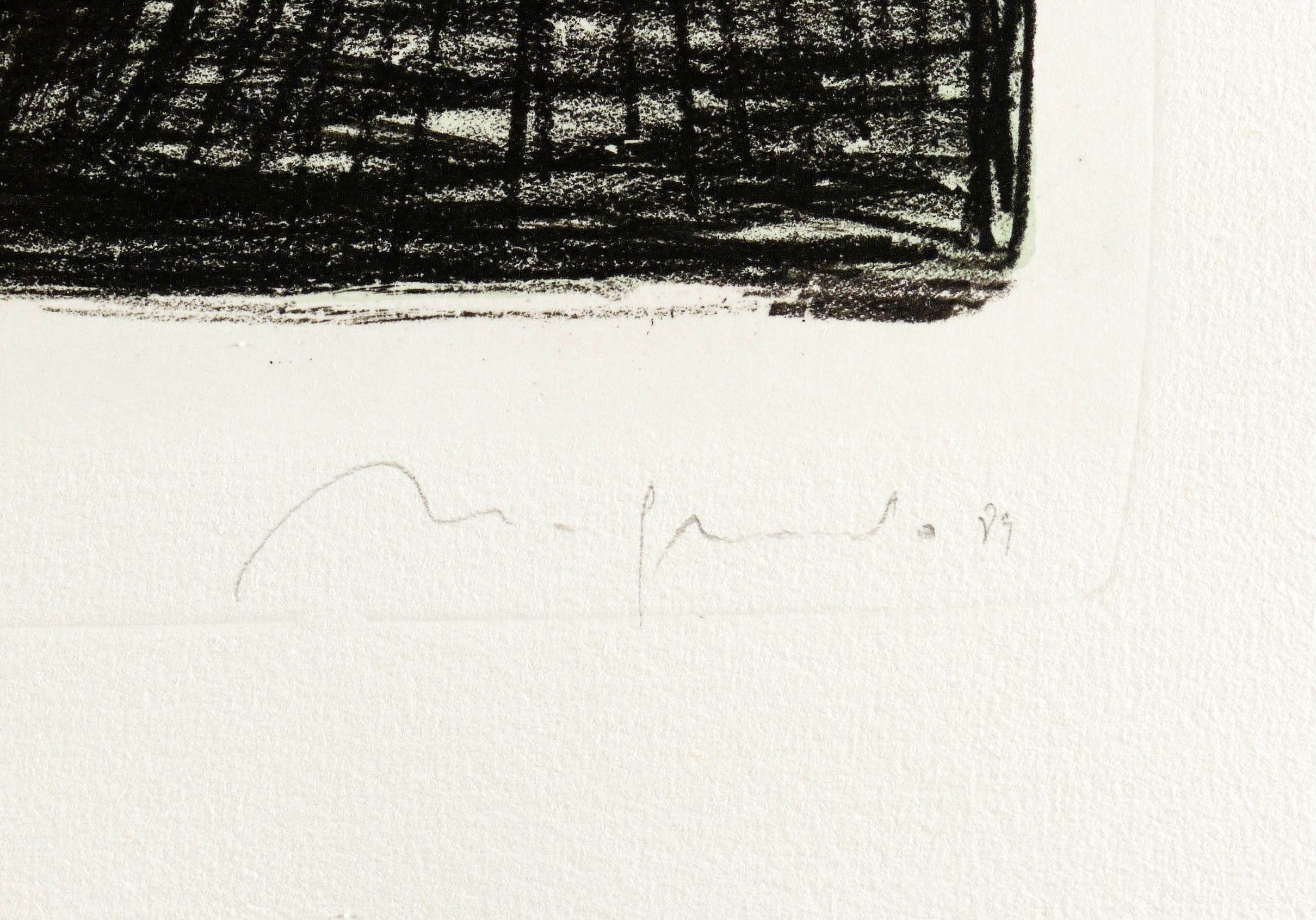1989. Tonlithografie / Kreidelithografie, in Schwarz, über blau-grüner Tonplatte, auf Hahnemühle-Bütten. – Originale Künstlergrafik, von Nuria Quevedo. – Auflage Exemplar Nr. 59/80. – 36,4 x 28,1 cm (Darstellung / Druckbild), 54 x 40 cm (Blatt).