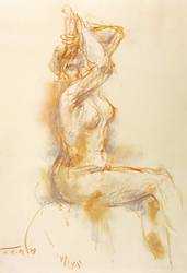 1978. Zeichnung / Farbkreide, in Silber & Orange, auf hellgelbem Velinkarton. – Originale Künstlergrafik, von Karl Erich Müller. – Unikat. – 29,8 x 21,0 cm (Darstellung / Blatt).