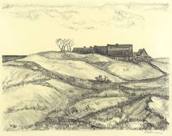 1929. Zeichnung / Graphitzeichnung, auf ockerfarbenem Maschinenpapier. – Originale Künstlergrafik, von Fritz Kempe. – Unikat. – 37,0 x 48,0 cm (Darstellung), 44 x 50 cm (Blatt).