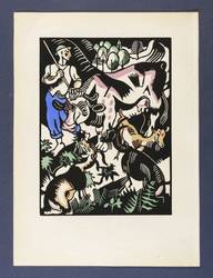 1918. Holzschnitt, mit Schablone handkoloriert, auf gelblichem Papier. – Originale Künstlergrafik, von Richard Seewald. – 23,9 x 17,7 cm (Darstellung / Druckstock), 34 x 25 cm (Blatt).