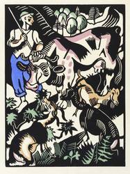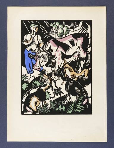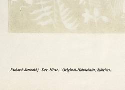 Jentsch H 77 III (von III). – Aus: Genius. Zeitschrift für werdende und alte Kunst (München: Kurt Wolff 1919), Bd. 1. – Nicht handsigniert. Verso typografisch bezeichnet: ″Richard Seewald / Der Hirte. Original-Holzschnitt, koloriert.″ – Abdruck vom originalen Holzstock für die erste Ausgabe des Genius von 1919. – Papier leicht gebräunt. Verso am rechten Rand Reste der ehemaligen Bindung. Minimal gewellt. Schönes kräftiges Kolorit. Insgesamt sehr gut erhalten.