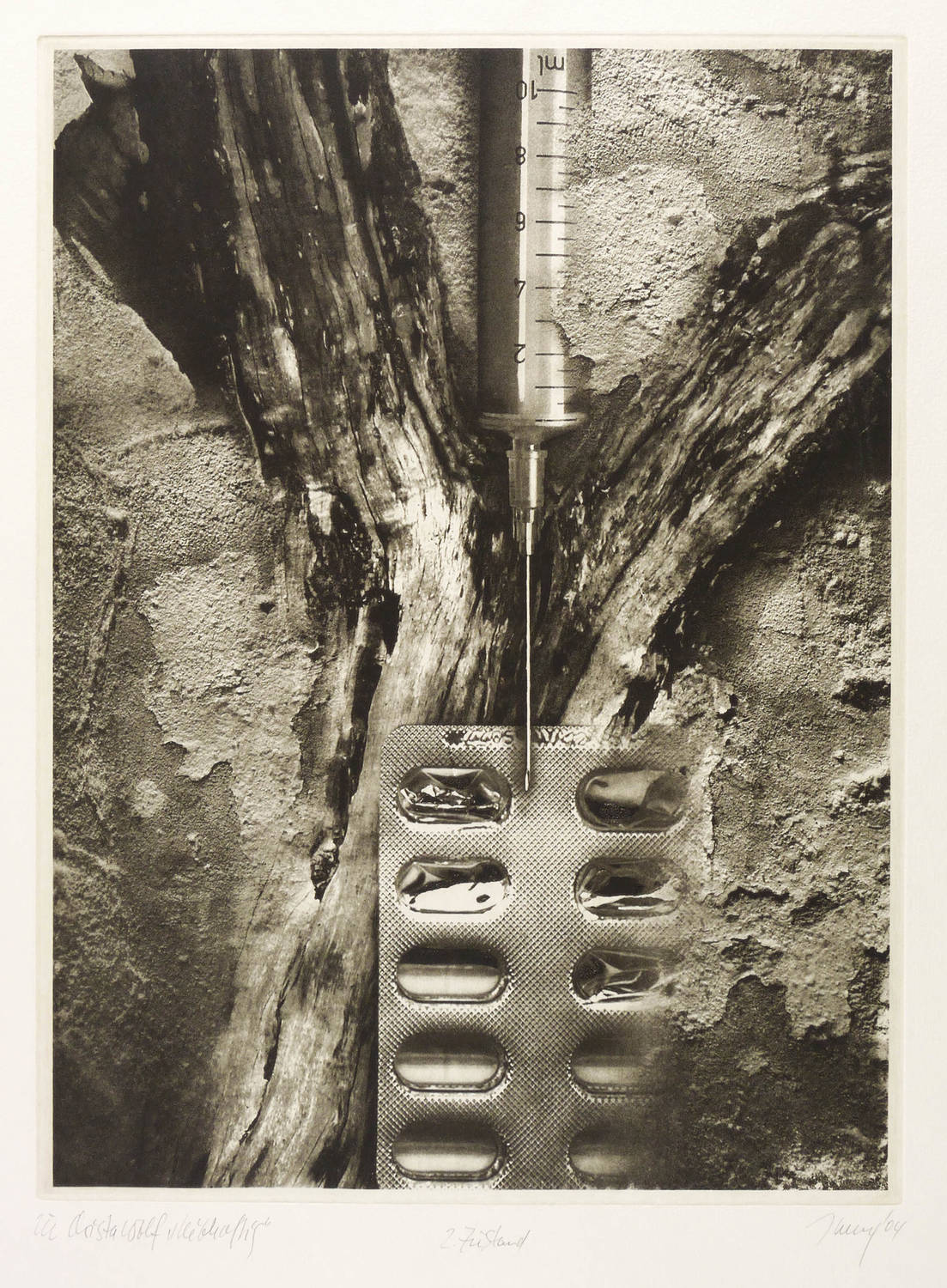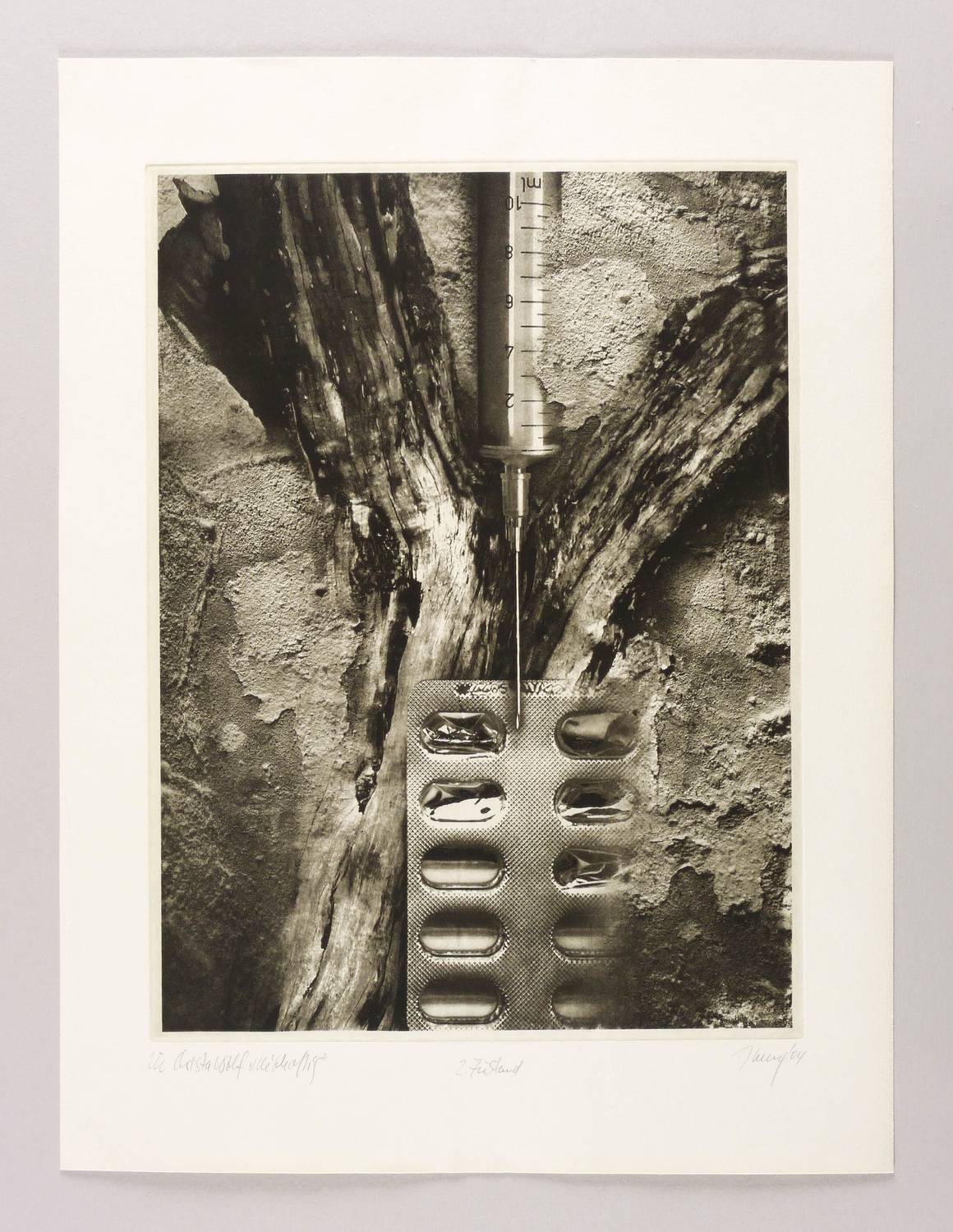 Rechts unten in Bleistift signiert und datiert. Links betitelt: ″zu Christa Wolf 'Leibhaftig'. Dazu bezeichnet: ″2. Zustand″. – Montage fotografischer Aufnahmen. – Sehr gut erhalten. Sehr guter Zustand.