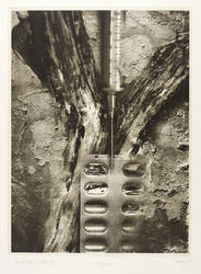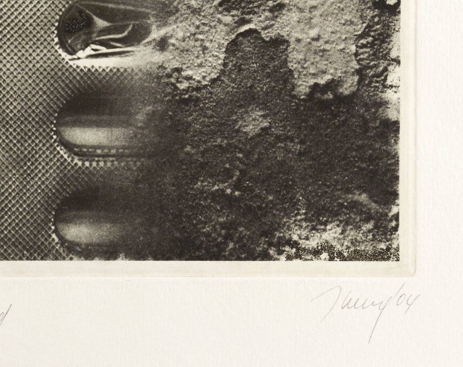 2004. Radierung / Fotomontage, in Schwarz, auf gelblichem Velin. – Originale Künstlergrafik, von Joachim Jansong. – Zustandsdruck. – 38,6 x 28,5 cm (Darstellung / Druckbild), 39,7 x 29,6 cm (Platte), 51 x 38 cm (Blatt).