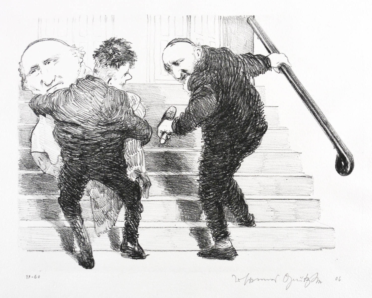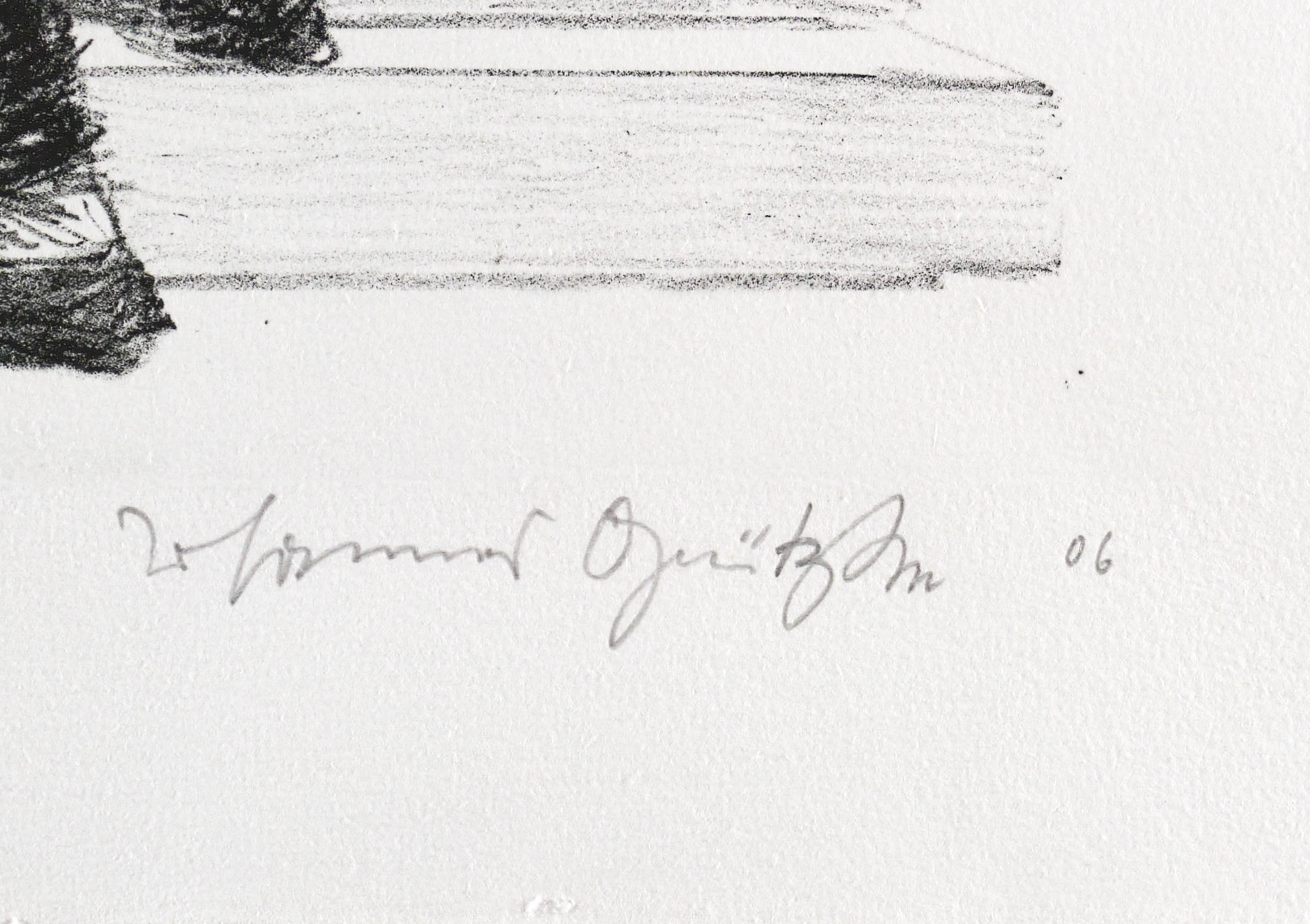 2006. Lithografie / Kreidelithografie, in Schwarz, auf hellchamois Hahnemühle. – Originale Künstlergrafik, von Johannes Grützke. – Auflage Exemplar Nr. 17/60. – 23,6 x 31,1 cm (Darstellung / Druckbild), 32 x 40 cm (Blatt).