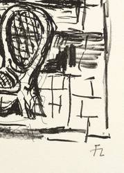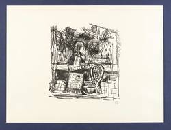 1980-1985. Lithografie / Kreidelithografie, in Schwarz, auf hellgelbem Maschinenbütten. – Originale Künstlergrafik, von Joachim Heuer. – 24,5 x 23,5 cm (Darstellung), 38 x 50 cm (Blatt).