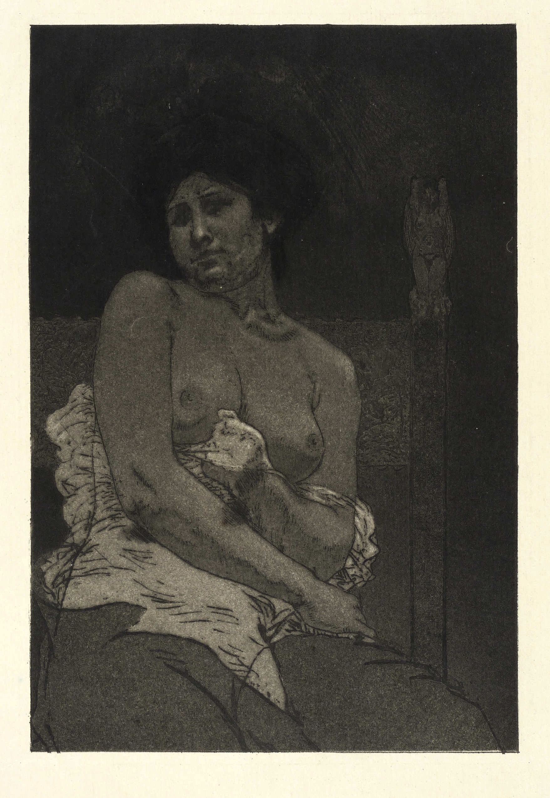 1904. Radierung / Aquatinta, in Schwarz, auf gelbem Maschinenbütten. – Originale Künstlergrafik, von Armand Rassenfosse. – 20,8 x 14,0 cm (Darstellung), 24,8 x 17,9 cm (Platte), 30 x 21 cm (Blatt).