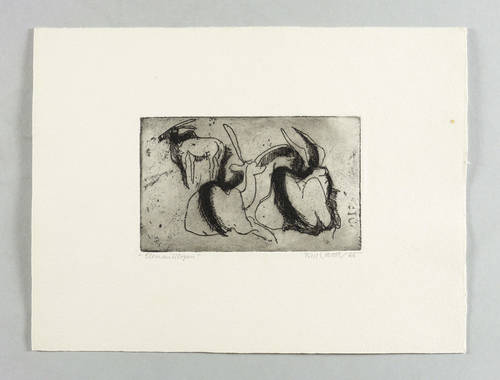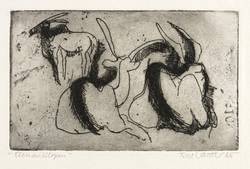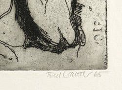 1965. Radierung / Strichätzung, in Schwarz, mit Plattenton, auf hellem Velin. – Originale Künstlergrafik, von Fred Walther. – 7,8 x 12,9 cm (Darstellung / Platte), 19 x 25 cm (Blatt).