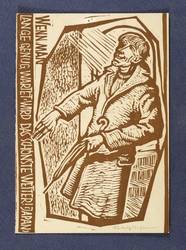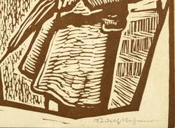 1981. Holzschnitt, in Braun, auf hellgelbem Karton. – Originale Künstlergrafik, von Rudolf Nehmer. – 15,9 x 11,0 cm (Darstellung / Blatt).
