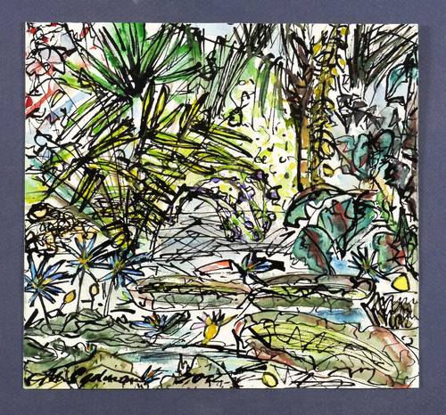 2012. Mischtechnik / Aquarell & Tusche, auf weißem Zeichenkarton. – Originale Künstlergrafik, von Michaela Egdmann. – Unikat. – 21,9 x 23,4 cm (Darstellung / Blatt).