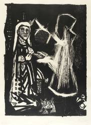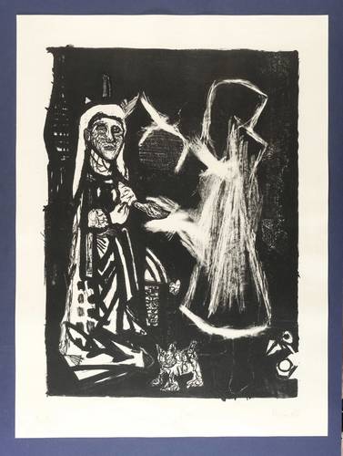 Rechts unten in Bleistift signiert und datiert. Links Auflagenbezeichnung. Mittig Titel. – Adaption zur Arnolfini-Hochzeit des altniederländischen Malers Jan van Eyck. – Im Rand etwas knickspurig. Sonst guter Zustand.