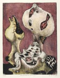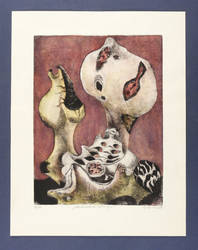 1980. Radierung / Kaltnadel & Aquatinta, in Schwarz, aquarelliert, auf hellem Velin. – Originale Künstlergrafik, von Jürgen Seidel. – Auflage Exemplar Nr. 10/16. – 32,2 x 24,7 cm (Darstellung / Platte), 42,5 x 33,5 cm (Blatt).