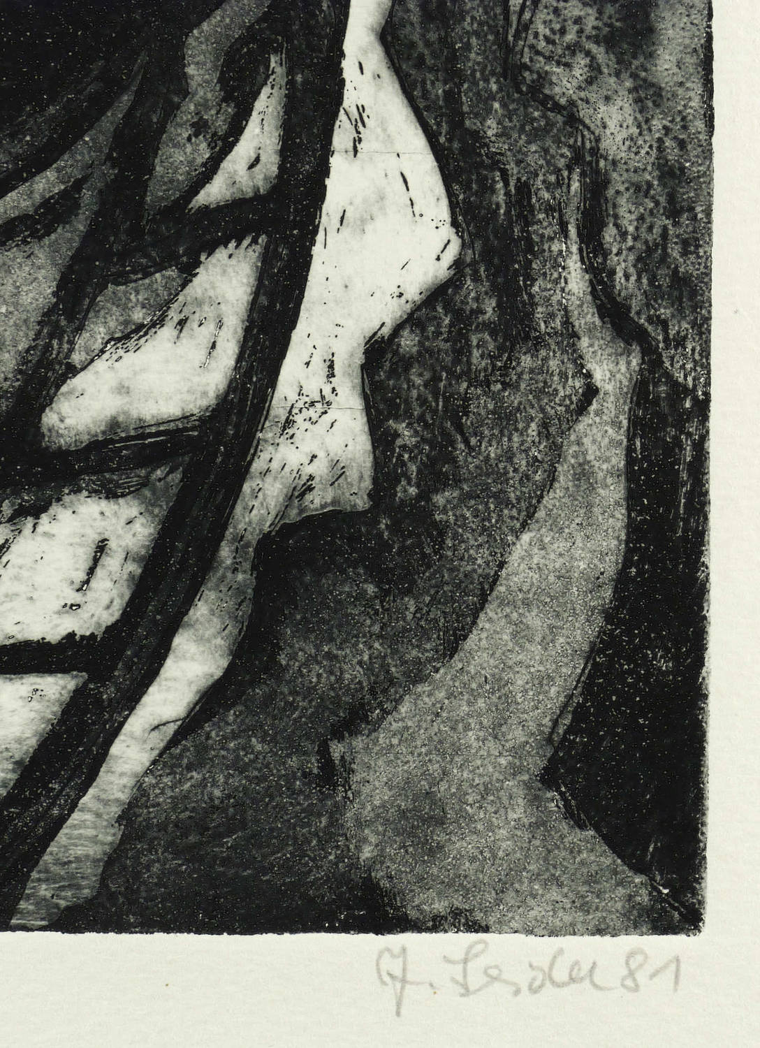 1981. Radierung / Aquatinta, in Schwarz, auf Torchon-Büttenkarton. – Originale Künstlergrafik, von Jürgen Seidel. – Auflage Exemplar Nr. 2/20. – 24,5 x 32,3 cm (Darstellung / Platte), 37,5 x 50 cm (Blatt).