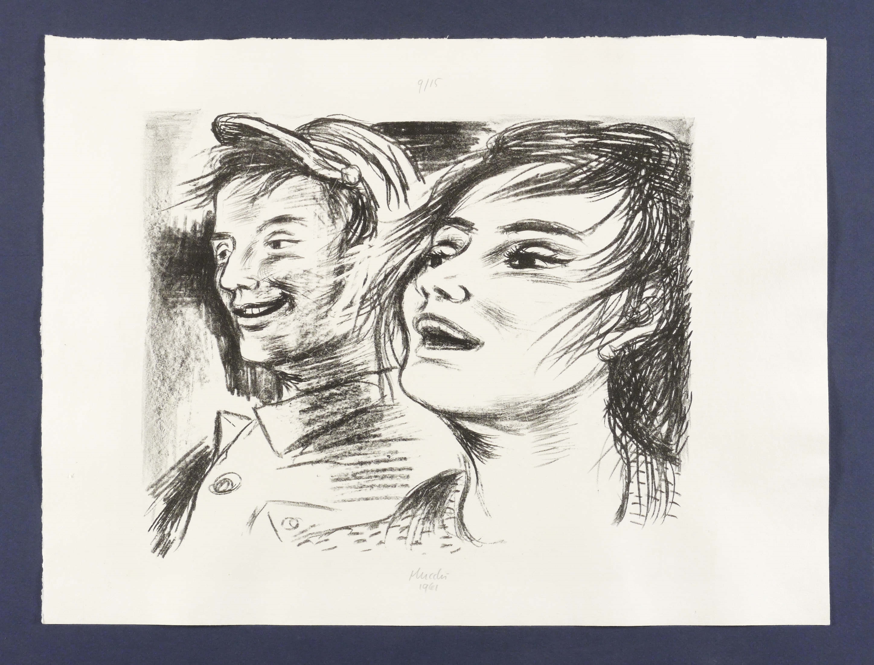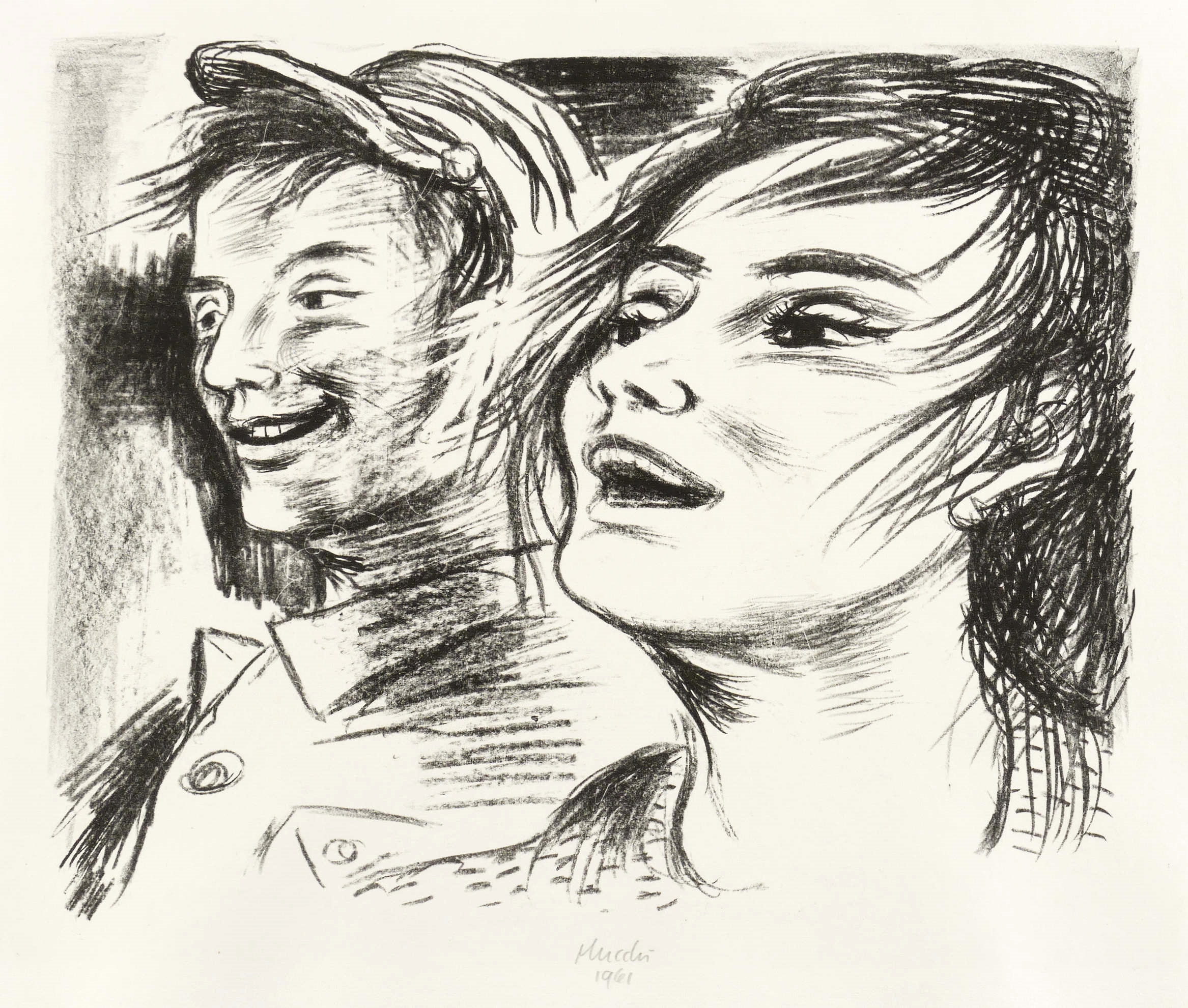 1961. Lithografie / Pinsellithografie, in Schwarz, auf hellem Maschinenpapier. – Originale Künstlergrafik, von Gabriele Mucchi. – Auflage Exemplar Nr. 9/15. – 30,0 x 37,0 cm (Darstellung), 40 x 53 cm (Blatt).