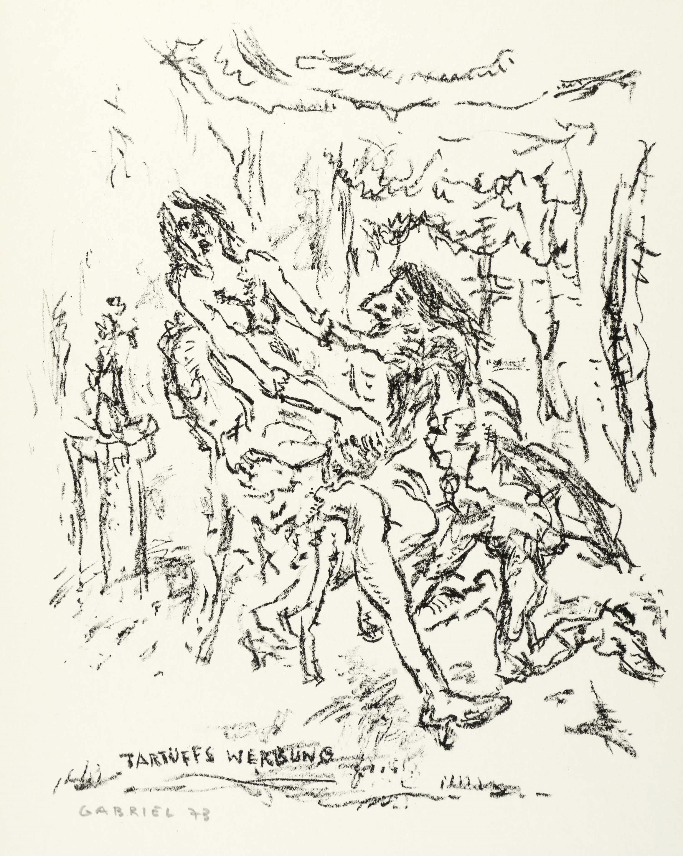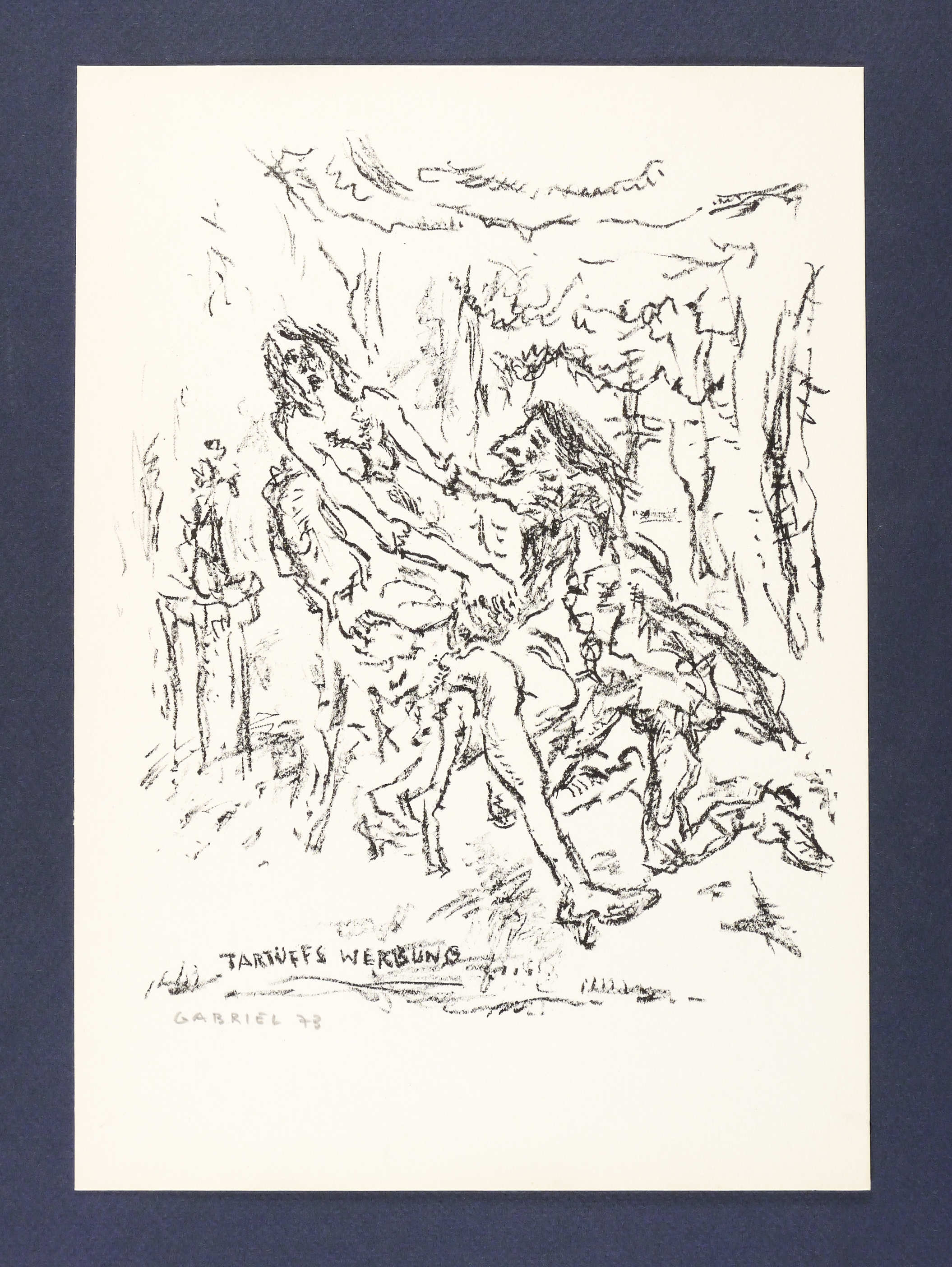 1973. Lithografie / Kreidelithografie, in Schwarz, auf weißem Karton. – Originale Künstlergrafik, von Manfred Gabriel. – 23,3 x 19,1 cm (Darstellung), 30 x 21 cm (Blatt).